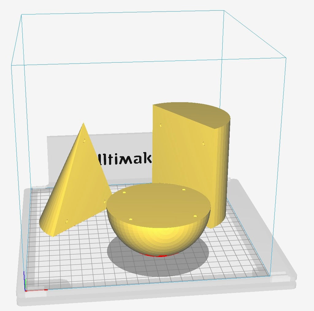 Dit is een doorsnede van een kegel, cilinder en bol met magneten. Dit product is ideaal voor educatieve doeleinden en kan met Openscad eenvoudig worden aangepast aan jouw wensen.