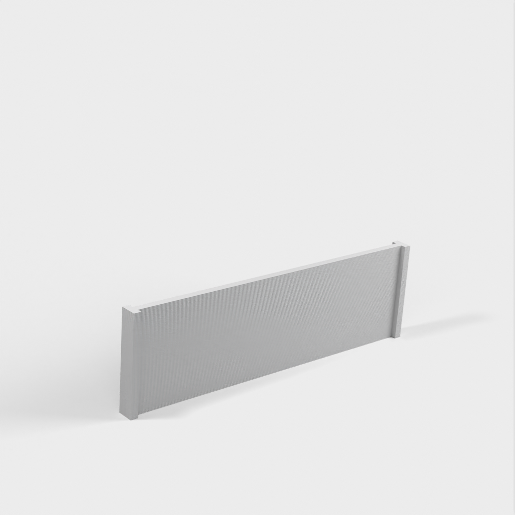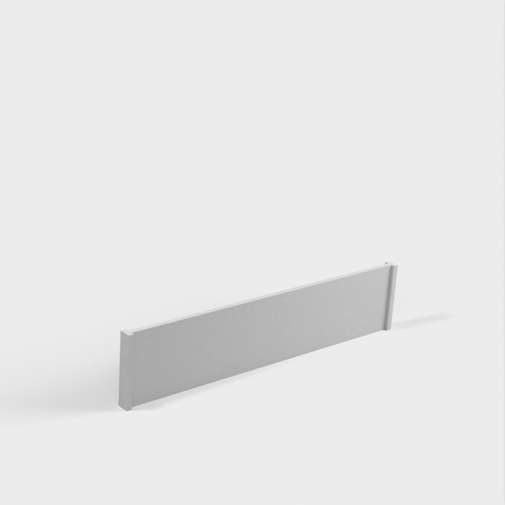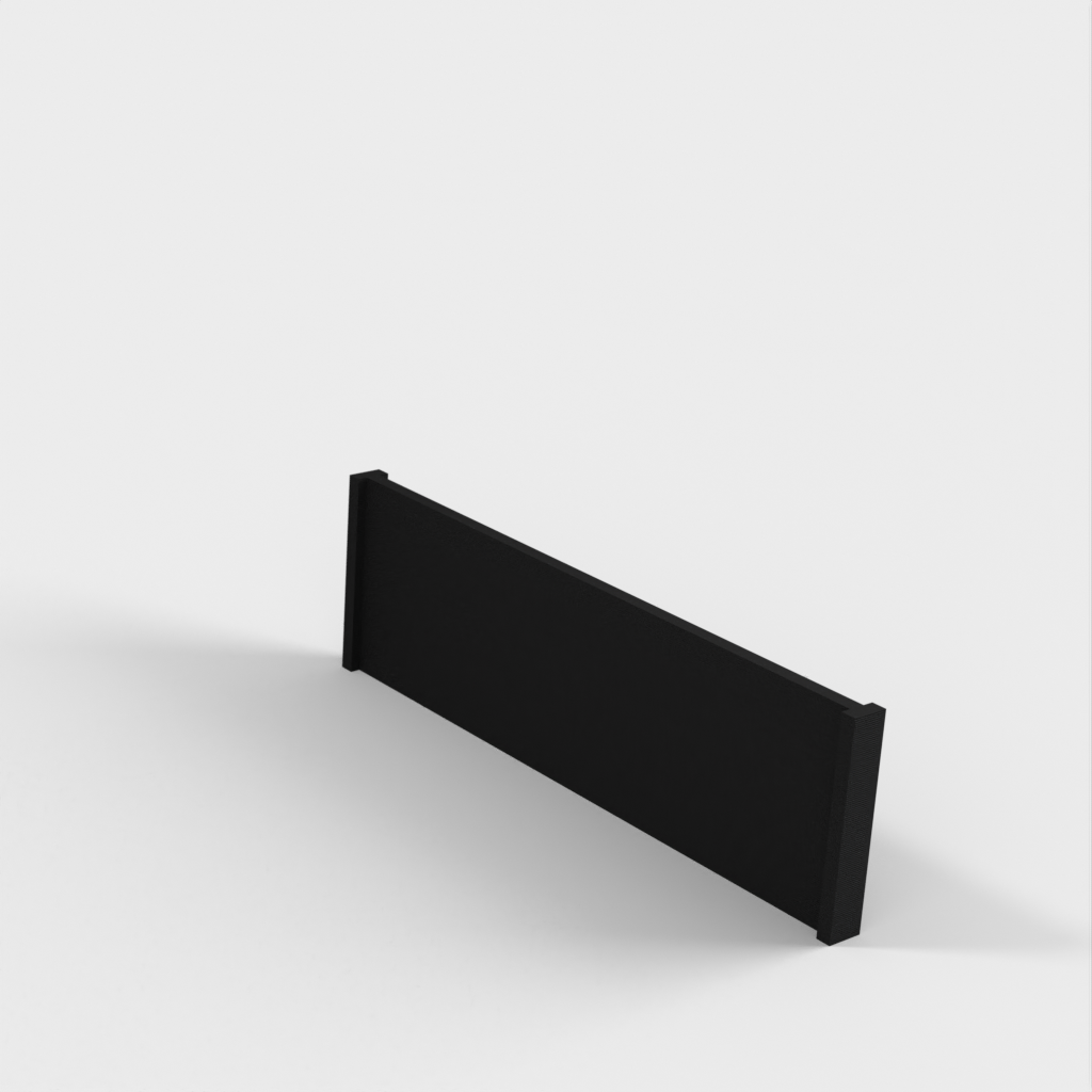 Eenvoudig organisatiesysteem voor laden. Dit systeem maakt gebruik van L-verbindingen in hoeken, T-verbindingen aan de buitenzijden en kruisverbindingen voor interne knooppunten. Druk de benodigde tussenschotten af en verbind ze door de verbindingsstukken van bovenaf door te knippen. Als je hogere tussenschotten nodig hebt, schaal je gewoon beide tussenschotten en verbindingen in dezelfde verhouding in de Z-richting.
