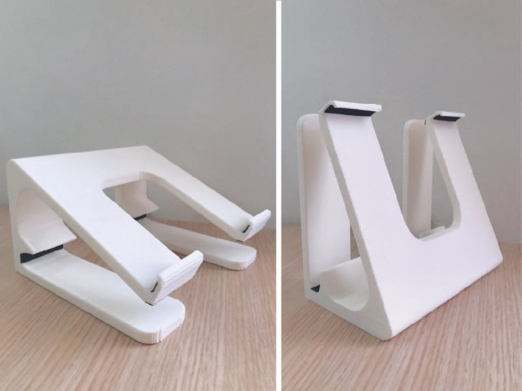 De 2-posities laptopstandaard voor de MacBook Pro 13" is ontworpen om je werkplek te verbeteren door twee verschillende instellingen voor je laptop te bieden. De eerste instelling plaatst je laptop in een hoek van 25 graden, waardoor het scherm op ooghoogte komt en je accessoires zoals een toetsenbord onder de standaard kunt opbergen. De tweede instelling houdt je computer verticaal, wat bureauruimte bespaart en tegelijkertijd de koeling van je laptop verbetert.