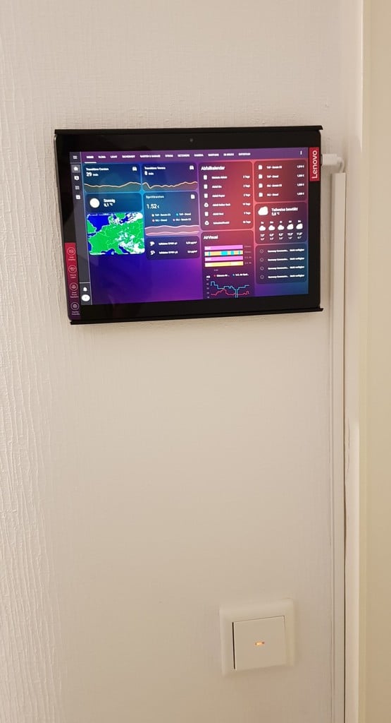 Deze wandmontage is ontworpen voor een Lenovo Tab M10 uit 2018 met een 10-inch scherm. Hij is perfect om de tablet aan de muur bevestigd in landschapsmodus te gebruiken en is ideaal voor gebruik met Home Assistant.