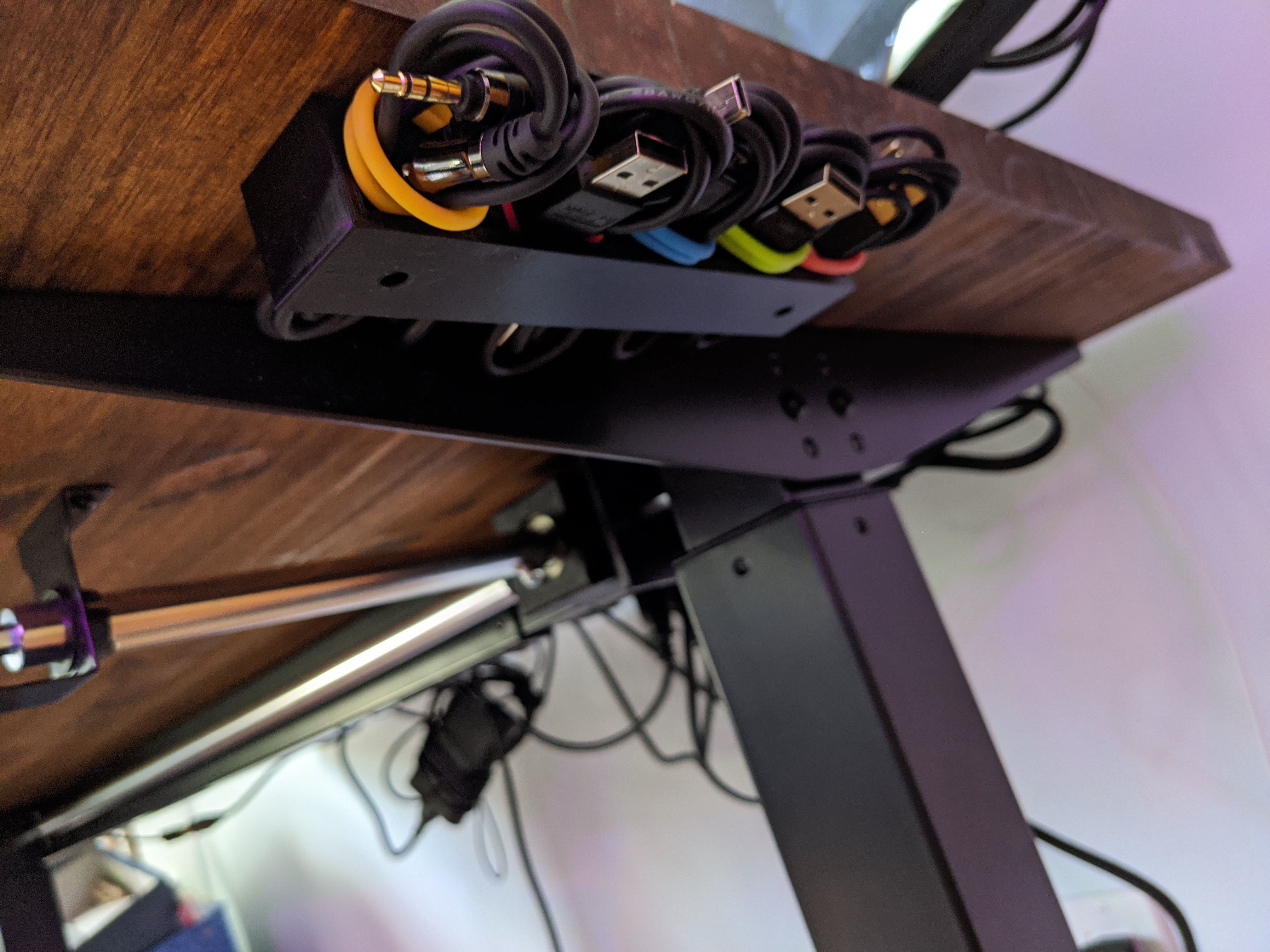 Dit kabelorganiseringssysteem is ontworpen om een opgeruimde en functionele werkruimte te creëren. Door deze kabelorganizer discreet onder het bureau te monteren, kunt u effectief rommel van uw bureaublad verwijderen. Het biedt ruimte voor maximaal 6 USB-kabels, waardoor het gemakkelijk is om uw meest gebruikte kabels bij te houden. Het systeem zorgt ervoor dat uw kabels netjes georganiseerd zijn en beschermd tegen onnodige slijtage of trekken, terwijl ze altijd binnen handbereik zijn. Voor een veilige bevestiging zijn slechts twee kleine schroeven nodig voor de montage. Creëer een meer gestructureerde en prettige bureaubladomgeving met deze handige kabelhouder.