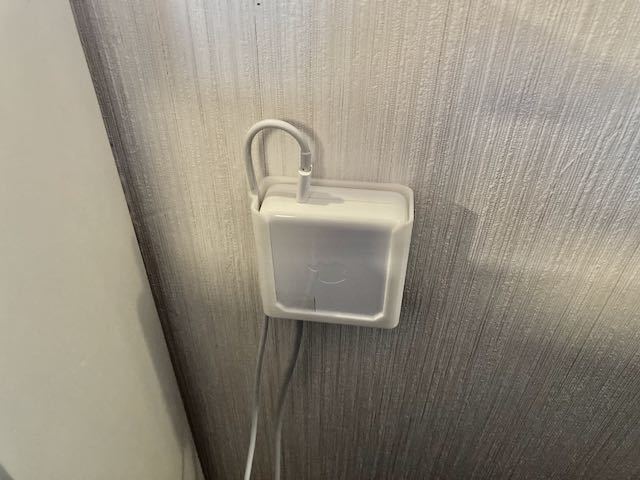 Eenvoudige en gemakkelijk te monteren muurbeugel voor de 61w Apple MacBook USB-C-oplader. Het heeft een geïntegreerde ontlasting voor de USB-C-kabel, wat de levensduur van de kabel verlengt.