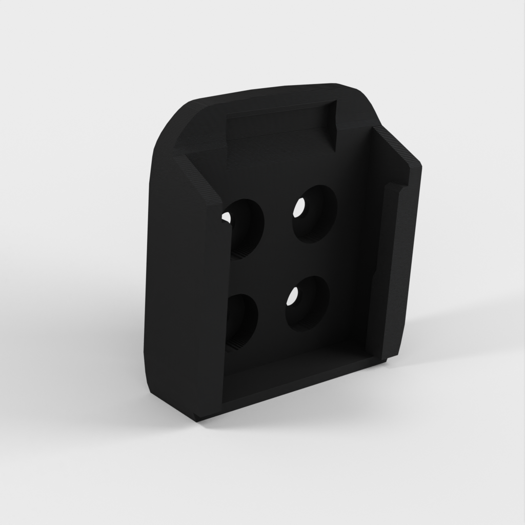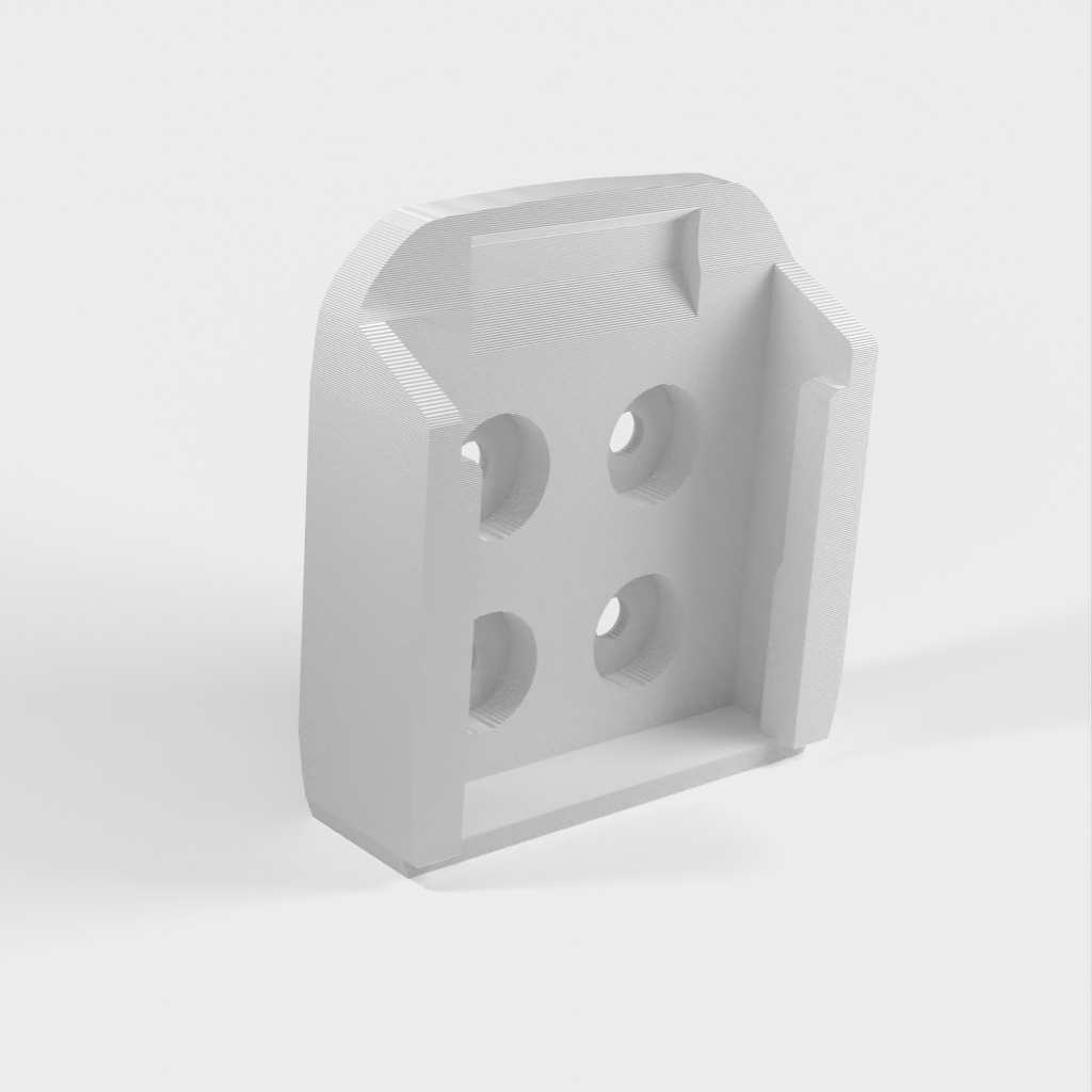 Makita batterijhouder voor een 18V batterij. De houder kan rechtstreeks aan een wand worden gemonteerd met behulp van 4 schroeven of in een 1 inch geperforeerde plaatwand.