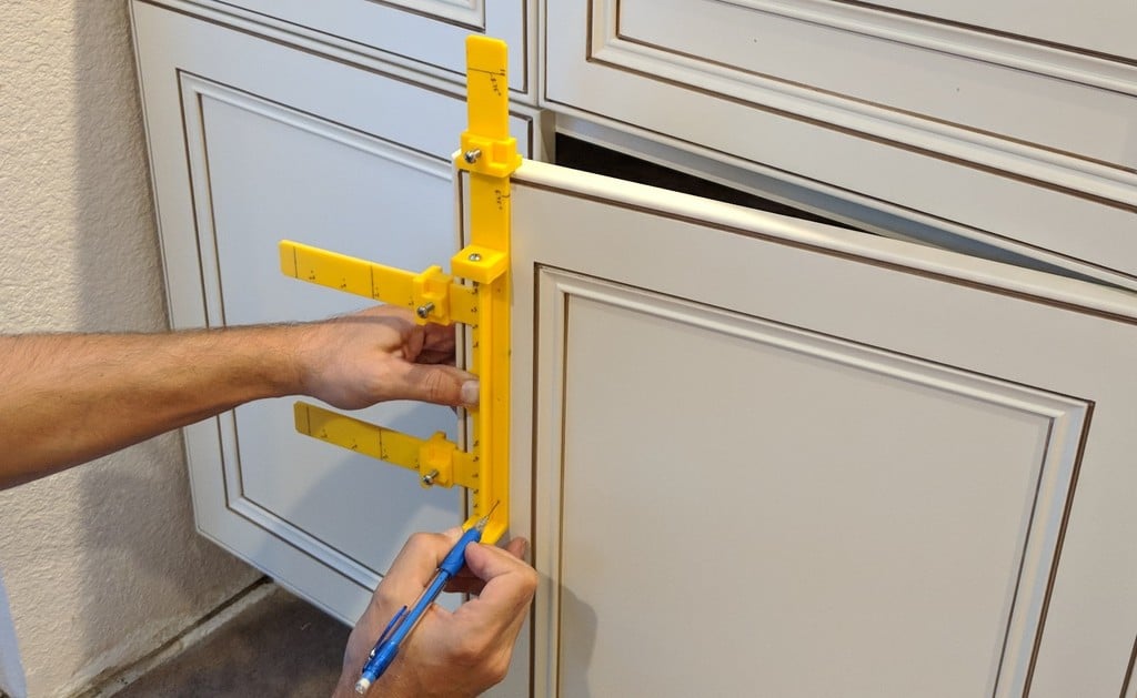 Sjabloon voor eenvoudige en nauwkeurige plaatsing van gaten voor kastgrepen. De sjabloon is verstelbaar en kan worden gebruikt voor greepafstanden van 3', 3,5', 3,75', 4', 4,5', 5', 5,5', 6', 6,5', 7', 7,5' en 16 cm. Met schuiffunctie voor nauwkeurige afstelling. Kan worden gebruikt voor zowel 8-32 als 1/4' machineschroeven.