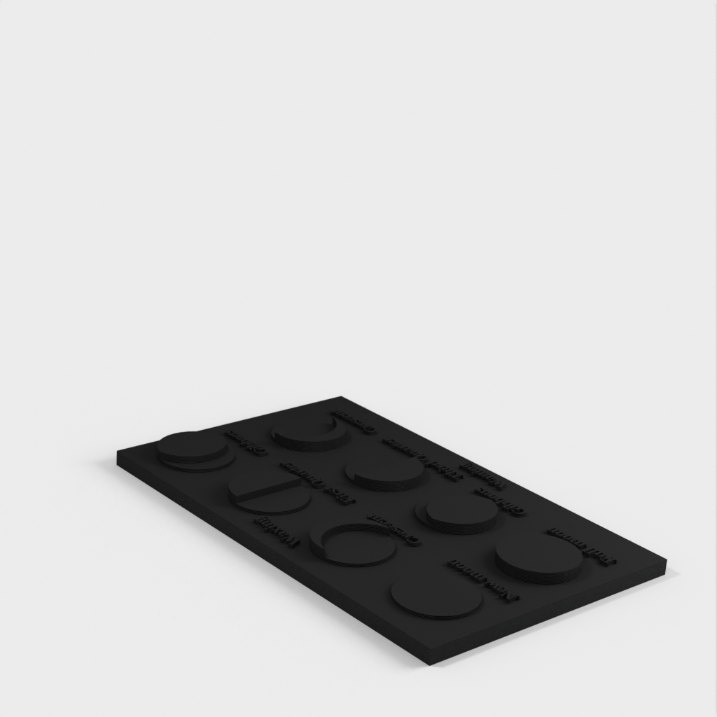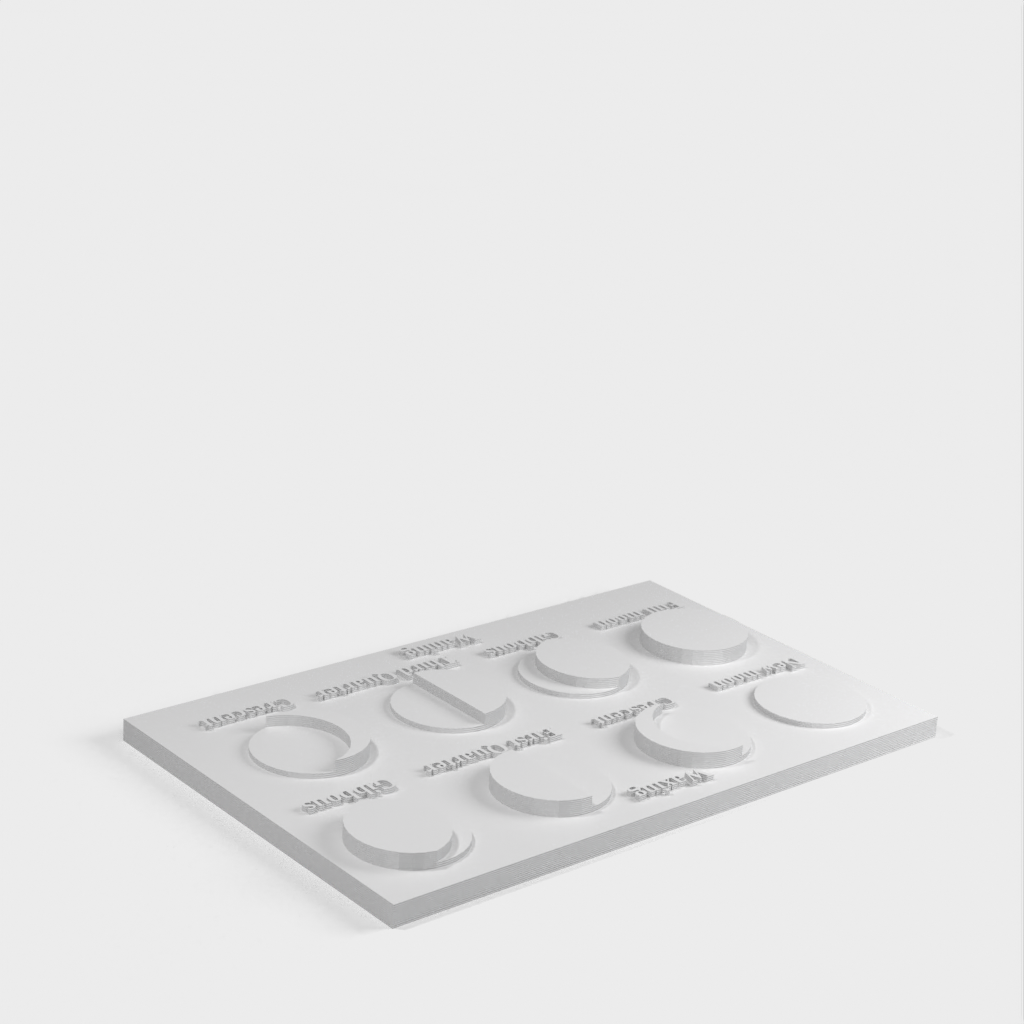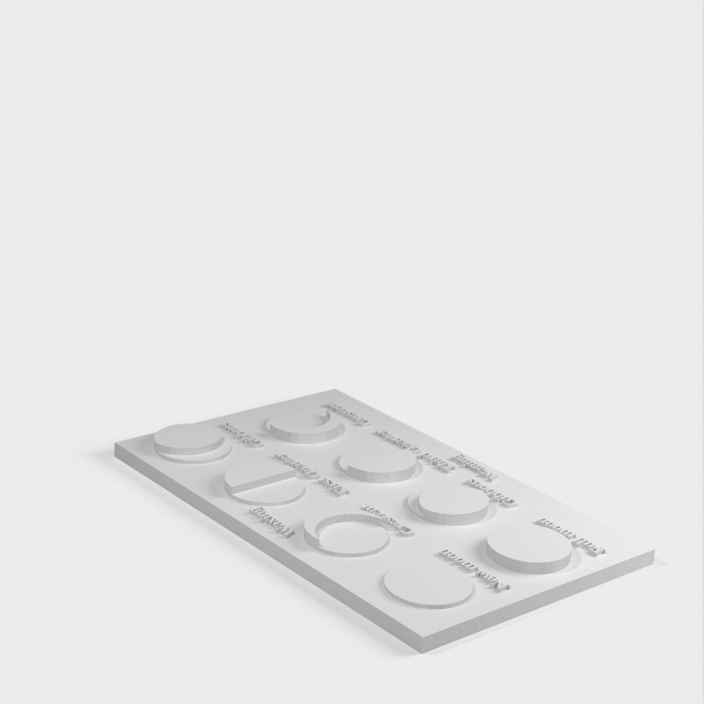 Dit is een schematische voorstelling van de maanfasen. Het model kan worden afgedrukt in verschillende formaten en versies, waaronder een versie zonder etiket die aan een leerling kan worden gegeven om in te vullen.