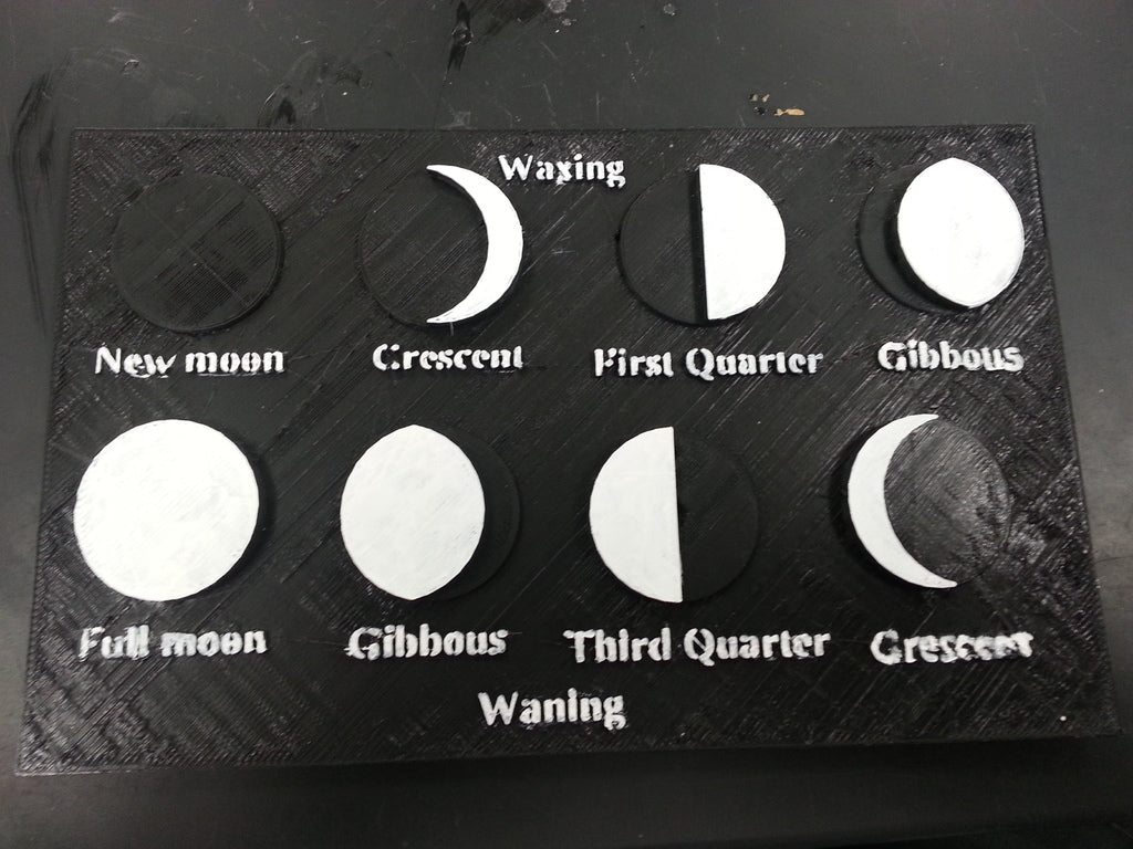 In de klas kan het onvoltooide model worden gebruikt als oefening voor de leerlingen om voor elke fase het verlichte deel van de maan in te vullen.