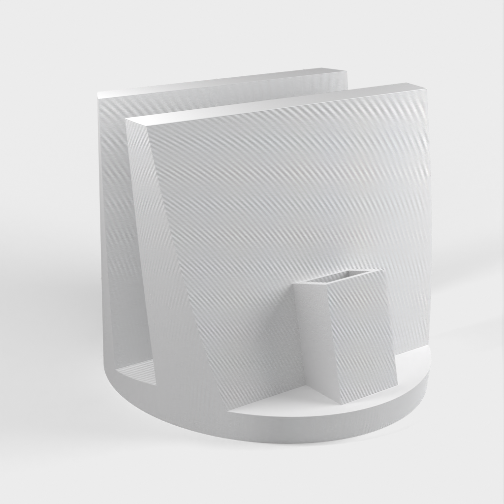 Eenvoudige houder voor de bekerhouder van je auto waar je telefoon in past. De houder heeft ook een klein compartiment om de oplaadkabel in op te bergen, zodat deze niet hoeft te zweven.