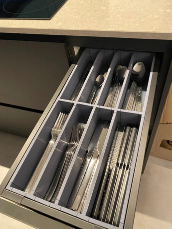 Met deze modulaire lade-organizer kun je rommelige lades transformeren in geordende ruimtes in je huis. Of het nu in de keuken, op kantoor, in de werkplaats of een heel andere plek is, deze flexibele opbergoplossing biedt een op maat gemaakte benadering om je spullen georganiseerd te houden.