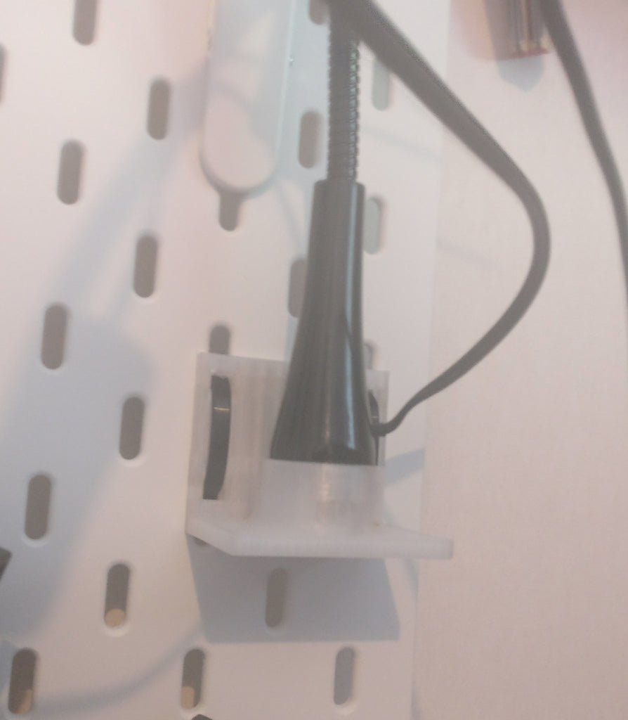 Een ophangbeugel voor de IKEA Jansjö lamp op de IKEA Skådis ophangplaat. Eenvoudig te monteren met 2 kabelbinders.