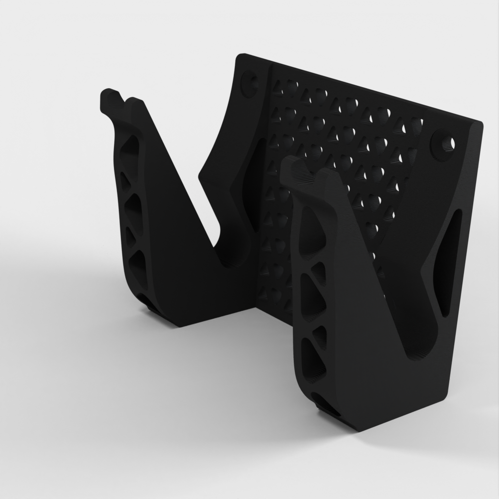 Dit is een dubbele wandhouder voor een skateboard of longboard. Het is ontworpen om je board eenvoudig en veilig aan de muur te hangen wanneer je hem niet gebruikt. Het onderdeel is eenvoudig te installeren en past perfect in elke kamer- of garage-opstelling. Door het gestroomlijnde ontwerp lijkt het zelfs alsof je board aan de muur zweeft. Het is de ideale oplossing voor wie rommel wil vermijden en meer ruimte in huis wil creëren.
