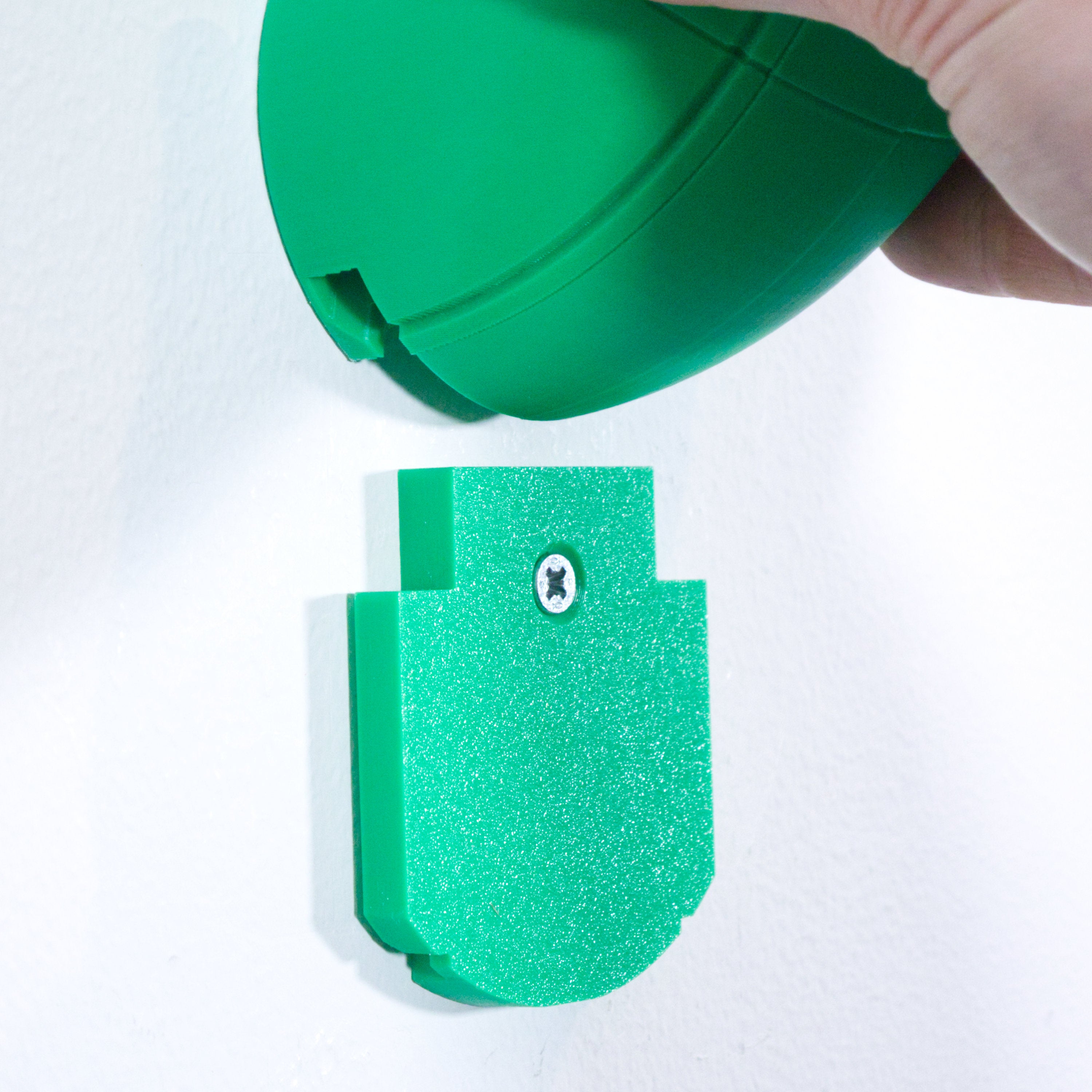 - Bevestiging met één enkele schroef en 3M Command-strips.
