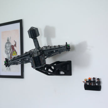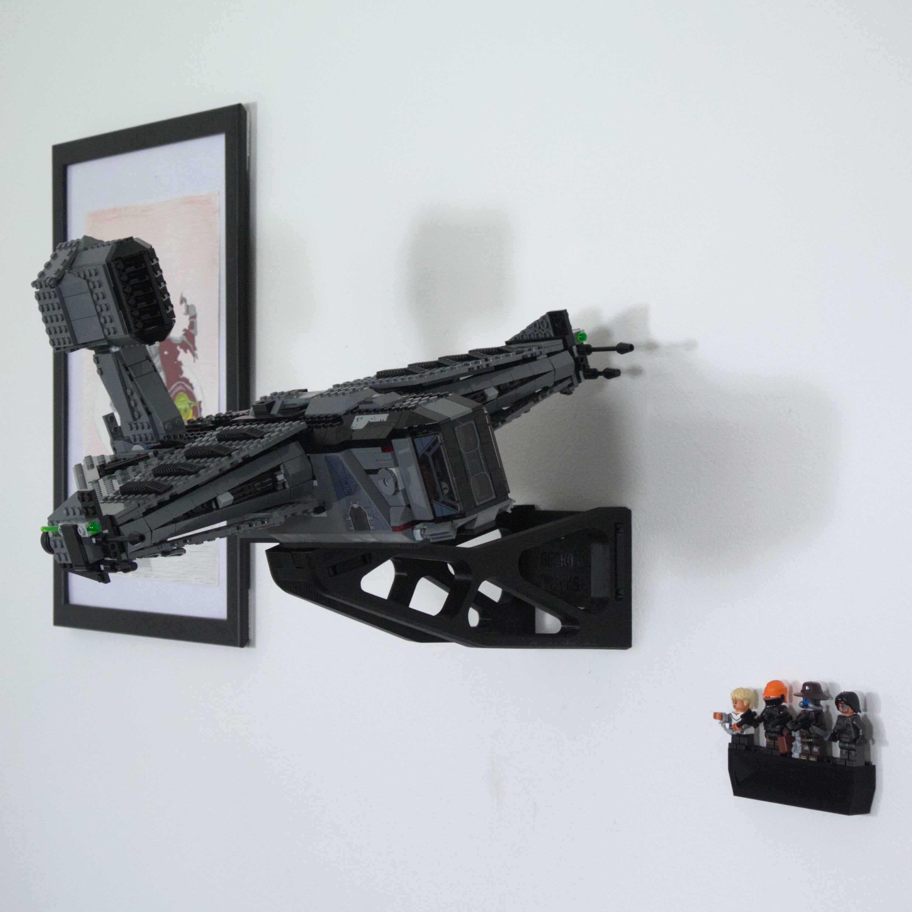 Deze wandhouder is ontworpen voor de LEGO Star Wars The Justifier set 75323. Het maakt het mogelijk om het model naar links, rechts of onder een hoek weer te geven, terwijl de set gemakkelijk kan worden verwijderd. Er is een aparte houder voor minifiguren inbegrepen en de montage vereist slechts één schroef in de muur.