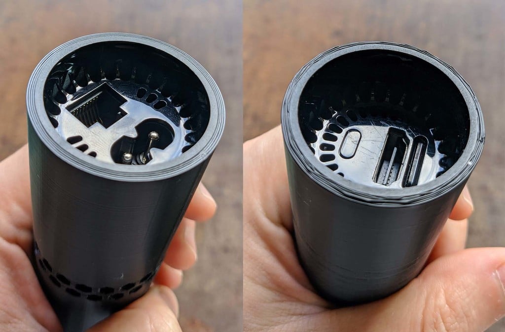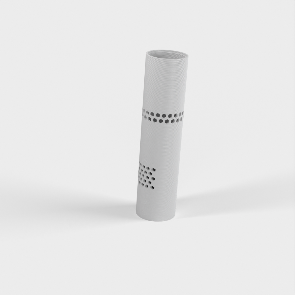 De 'Airflow'-behuizing van de Nvidia Shield 2019 Tube is ontworpen om de luchtstroom in het apparaat te vergroten en de warme lucht af te voeren, waardoor het apparaat koeler blijft en de ingebouwde koelventilator minder hard hoeft te werken. Dit minimaliseert storend geluid van de koeler, zelfs bij langdurig gebruik en maximale prestatie-instellingen. De behuizing kan nog steeds heet worden, maar het geluidsniveau is aanzienlijk lager. Het product bevat een *.stl-bestand dat afwijkt van het bestand op de afbeeldingen, met kleinere uitlijningspennen voor naadloze installatie.