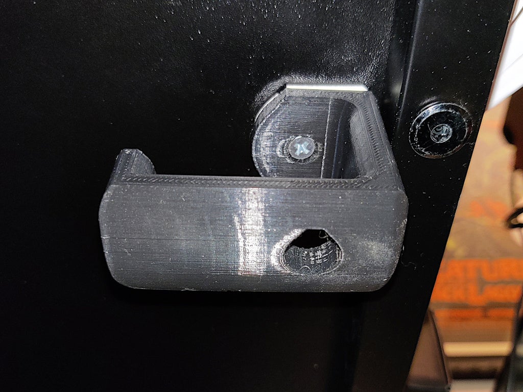 Dit is een hoofdtelefoonhouder voor onder het bureau. Montage vindt plaats met een #8 of #10 gefreesde schroef, waardoor het een eenvoudige en flexibele oplossing is voor het opbergen van je hoofdtelefoon onder je bureau. Houdt je hoofdtelefoon veilig en handig opgeborgen wanneer deze niet in gebruik is.