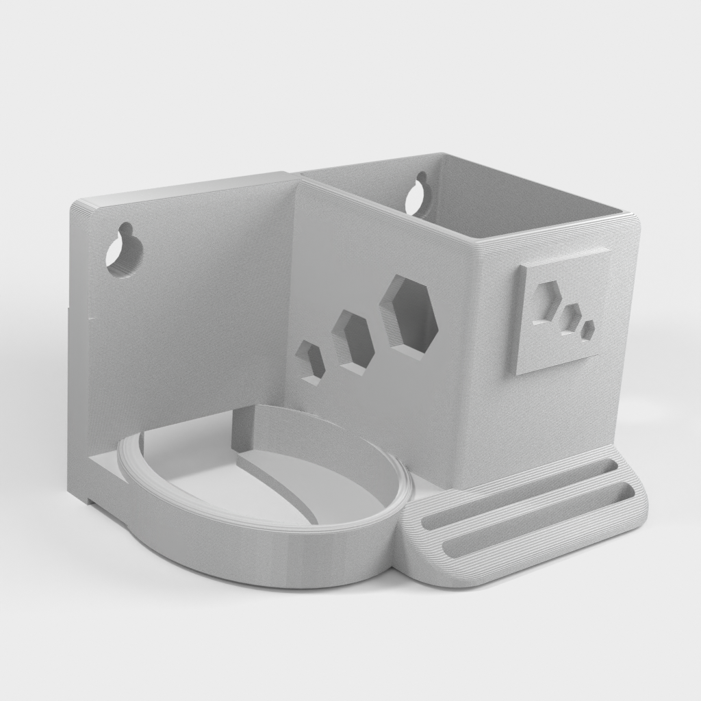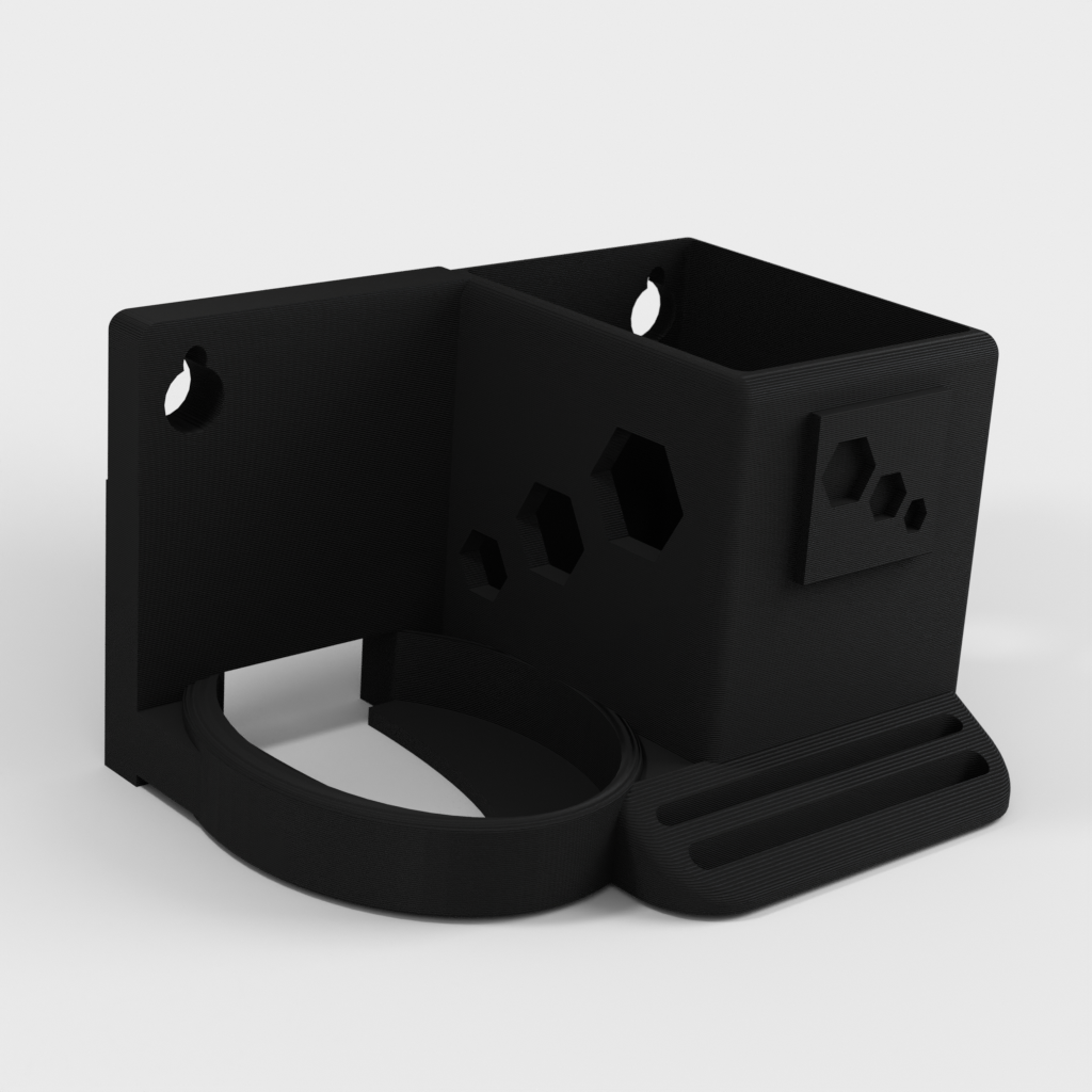 Deze hangende houder is ontworpen om uw Oral-B elektrische tandenborstel en de oplader effectief op te bergen. Het draagt bij aan een meer georganiseerde badkamer door de tandenborstel en oplader bij elkaar te houden en weg van oppervlakken. De praktische wandmontage maakt ruimte vrij op de wastafel en minimaliseert rommel, waardoor een opgeruimde en functionele ruimte ontstaat. Deze opladerhouder is een eenvoudige oplossing om de badkamerinrichting te optimaliseren en ervoor te zorgen dat uw elektrische tandenborstel altijd klaar is voor gebruik.