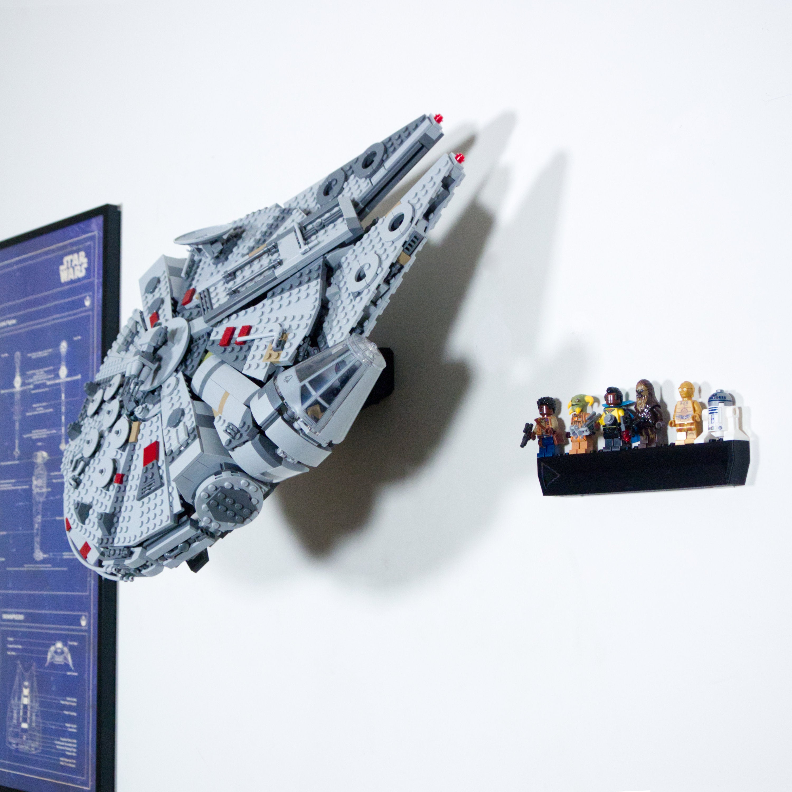 Creëer plankruimte door uw LEGO Millennium Falcon aan de muur te hangen. Met deze wandbeugel kunt u het ruimteschip in 8 verschillende hoeken presenteren voor een unieke uitstraling. Er wordt een houder voor minifiguren meegeleverd en de oplossing is geschikt voor sets 75105, 75257 en 75389.