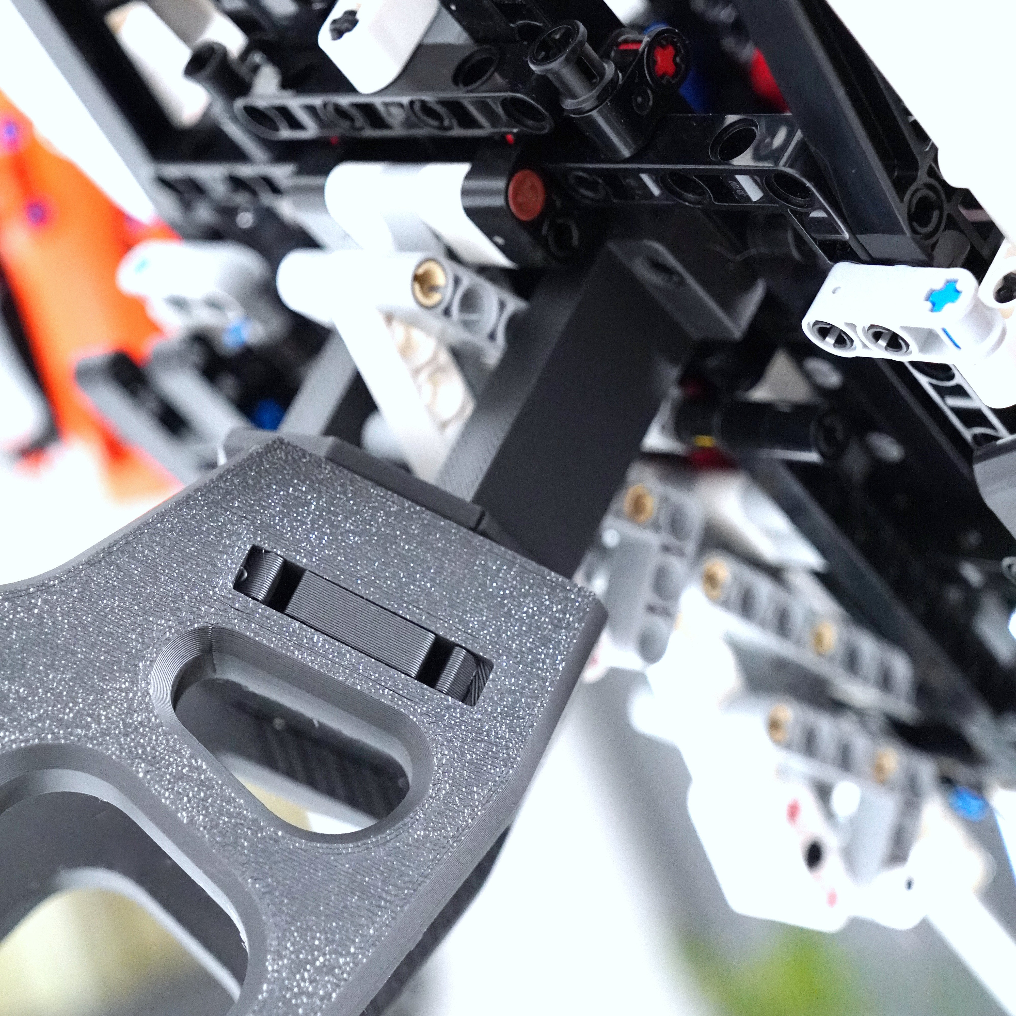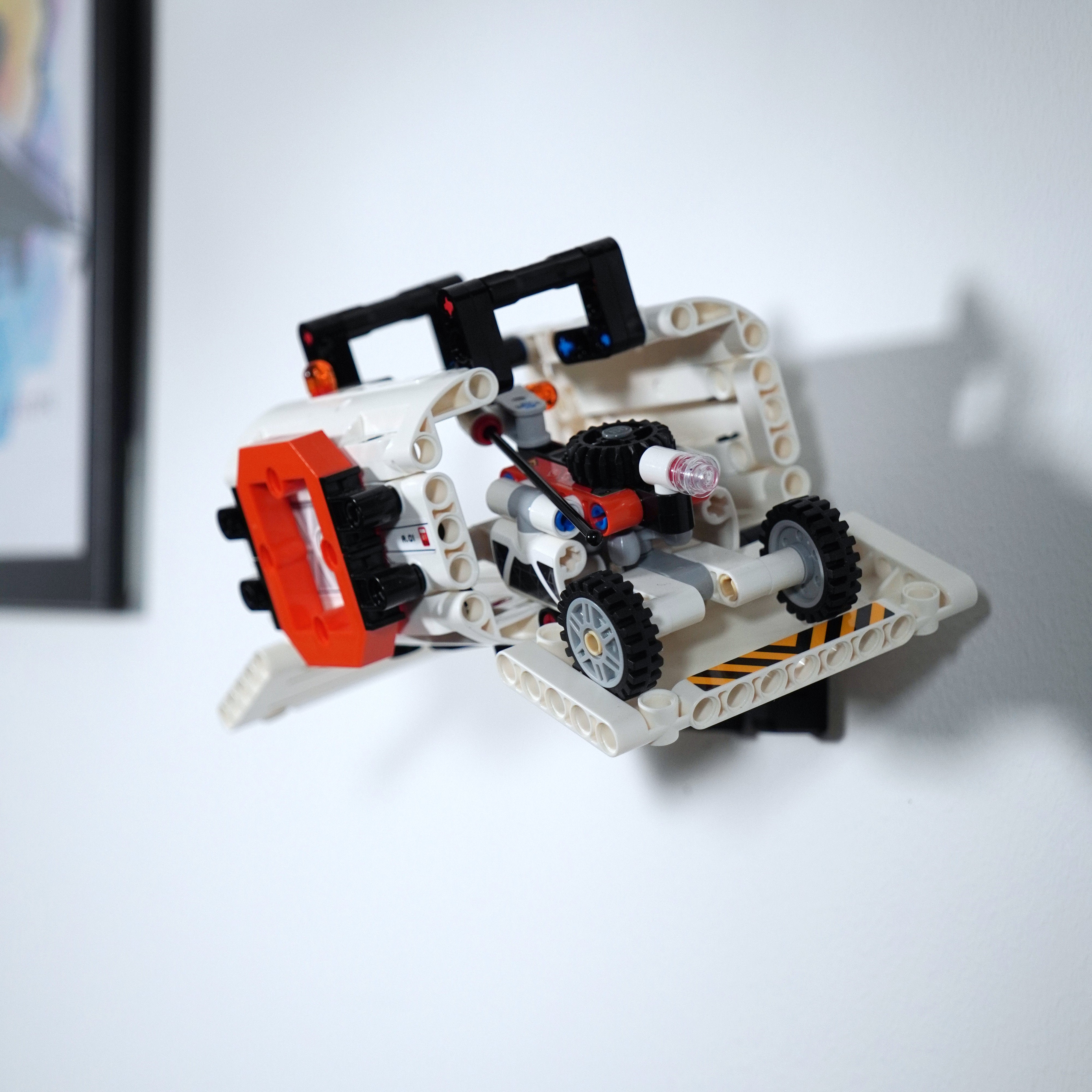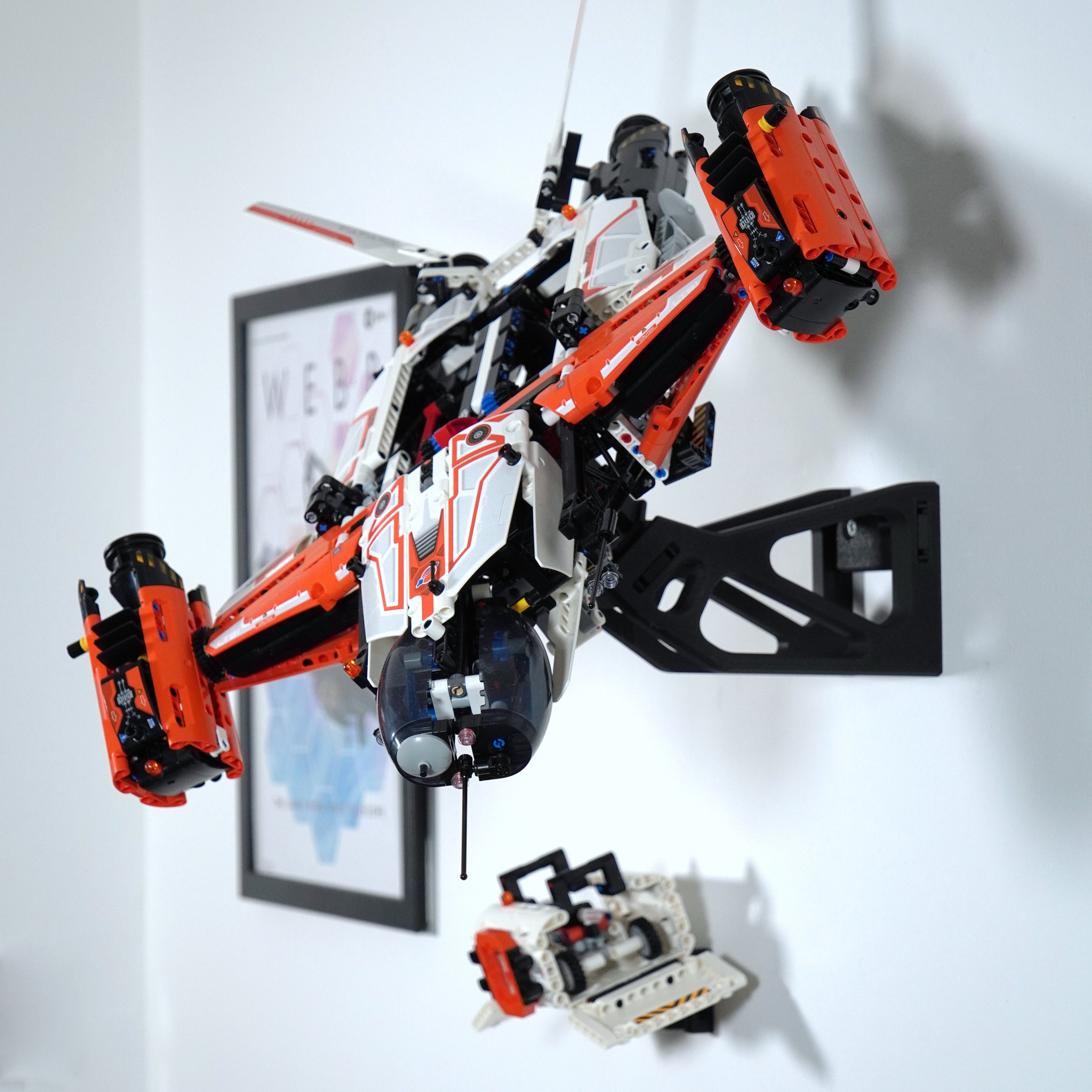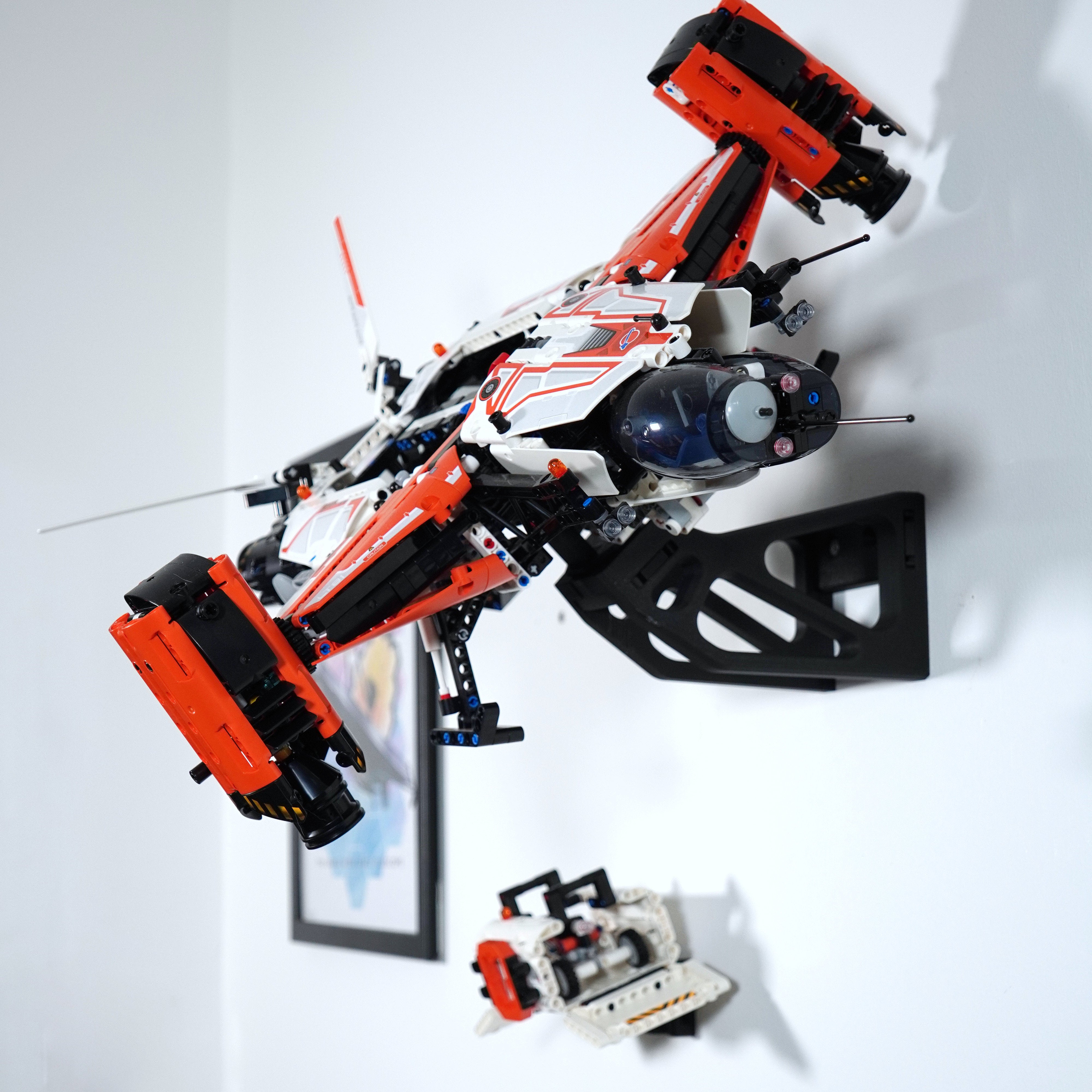 Presenteer uw Technic Space VTOL Heavy Cargo Ship veilig met deze verstelbare wandhouder. Hij ondersteunt verschillende hoeken, zoals naar voren of naar de zijkant, en maakt eenvoudig losmaken mogelijk. De set bevat ook een aparte houder voor de container en de rover, zodat het hele model samen aan de muur kan worden tentoongesteld.