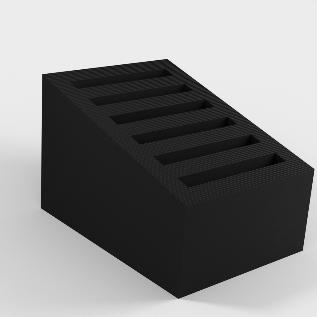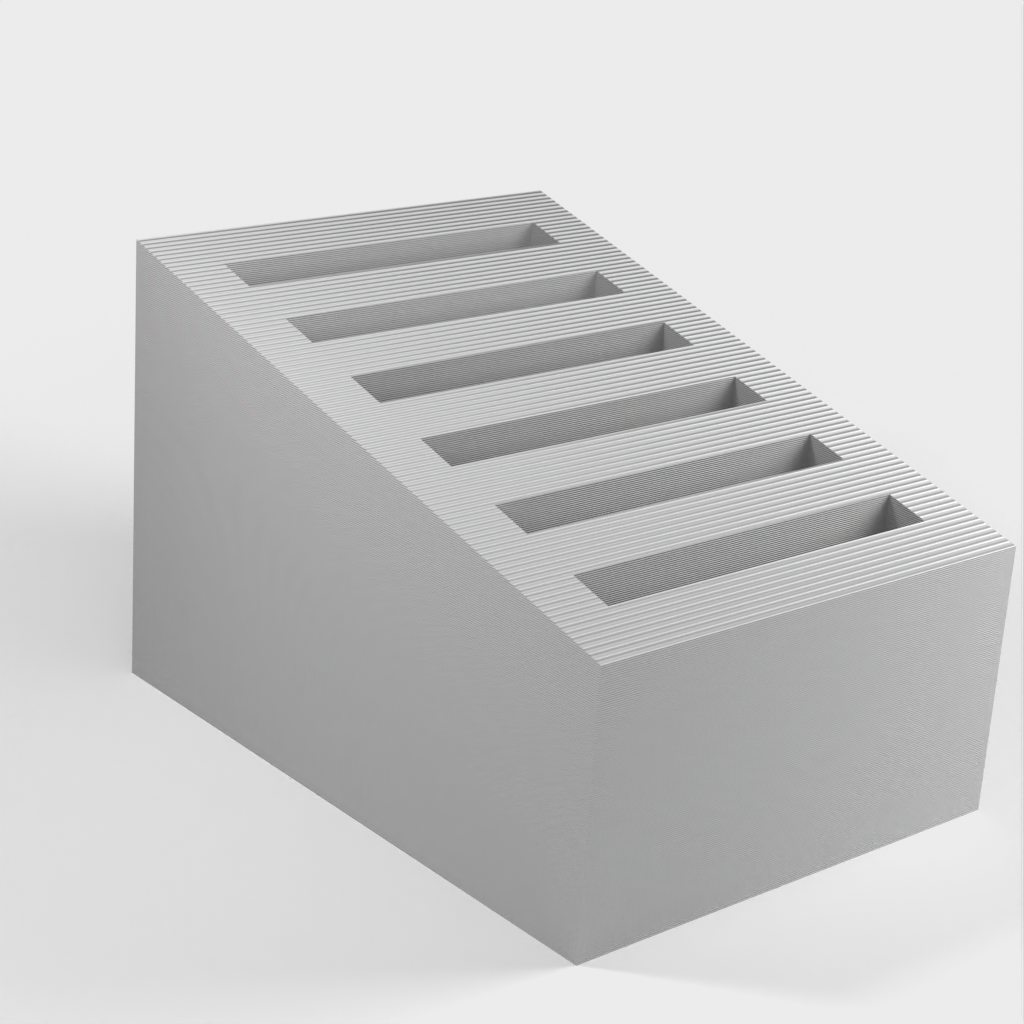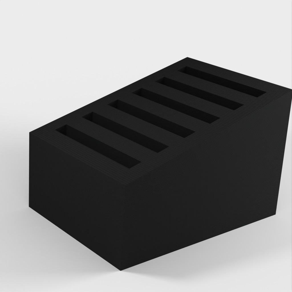 De Parametric SD-kaarthouder is een verbeterde versie van de SD-kaarthouder van jpcw. Dit model kan worden aangepast aan uw specifieke behoeften. De belangrijkste parameter is het aantal sleuven, maar je kunt ook de grootte van de sleuven aanpassen voor een strakkere of lossere pasvorm. Extra aanpassingen zoals de hoek van de bovenkant van voor naar achter of de afstand tussen de kaarten kunnen ook worden gewijzigd.