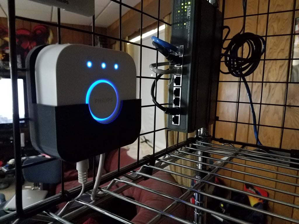De montagelooplossing is uiterst flexibel en maakt het mogelijk om je Philips Hue Bridge te bevestigen aan een rasterwand of andere geschikte oppervlakken met behulp van een standaard kabelbinder (zip tie). Dit zorgt ervoor dat je slimme licht-hub stabiel gemonteerd blijft en zorgt voor een opgeruimdere en georganiseerde slimme licht-setup.