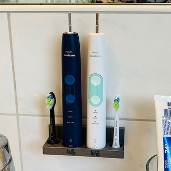 Deze tandenborstelhouder is een praktische oplossing voor het opbergen van twee elektrische Philips Sonicare tandenborstels en hun bijbehorende borstelkoppen. Het is ontwikkeld om orde te scheppen en ruimte vrij te maken in de badkamer, doordat het je tandenborstels georganiseerd en gemakkelijk toegankelijk houdt.