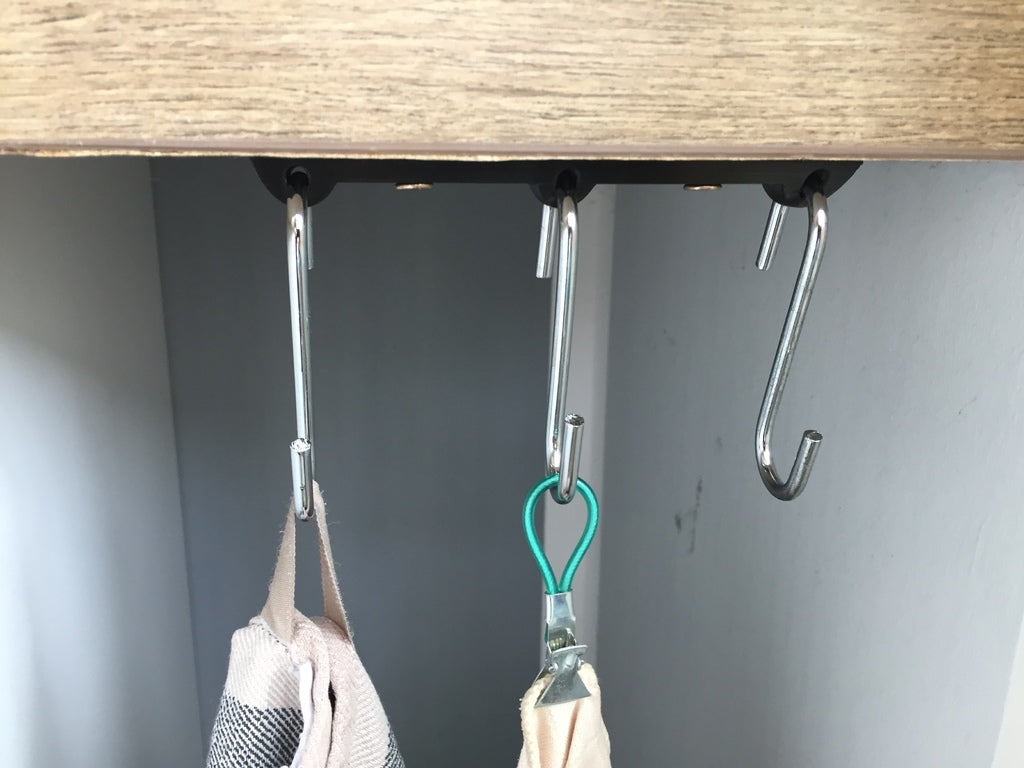 Ervaar een meer georganiseerde en functionele keukenruimte met deze slimme S-haakhouder. Deze houder is ontworpen om eenvoudig onder het aanrecht of een plank te worden gemonteerd en stelt u in staat uw bestaande S-haken te hergebruiken voor het ophangen van theedoeken, handdoeken of ander klein keukengerei.