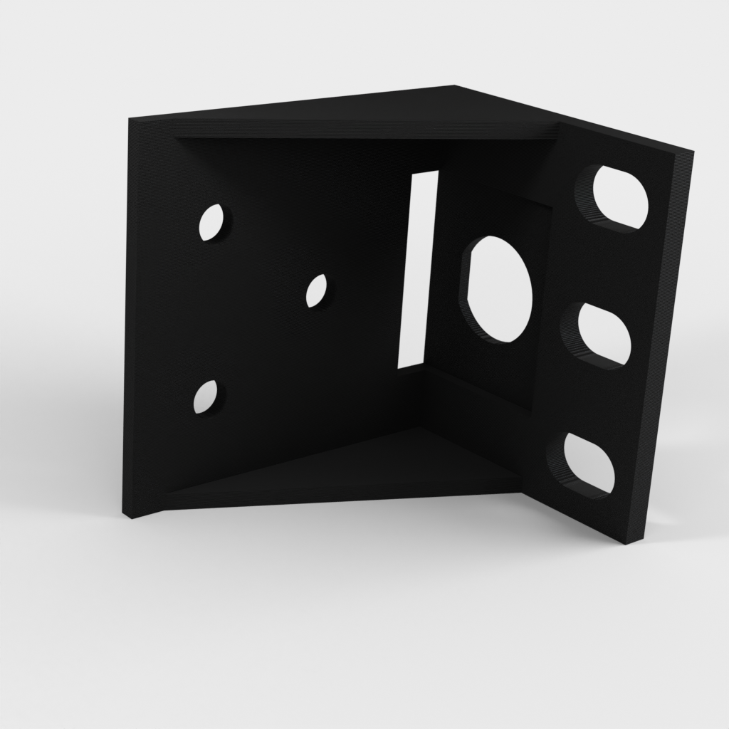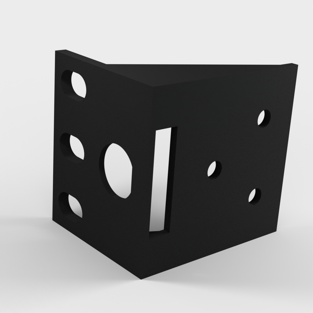 Gebruik kleine M3-schroeven om de middelste beugel op de twee ontvangers te monteren. Je kunt dezelfde schroeven gebruiken om de bodemplaat aan de middelste beugel te schroeven. Ik heb reserve harde schijf schroeven gebruikt van een Supermicro server computerbehuizing.