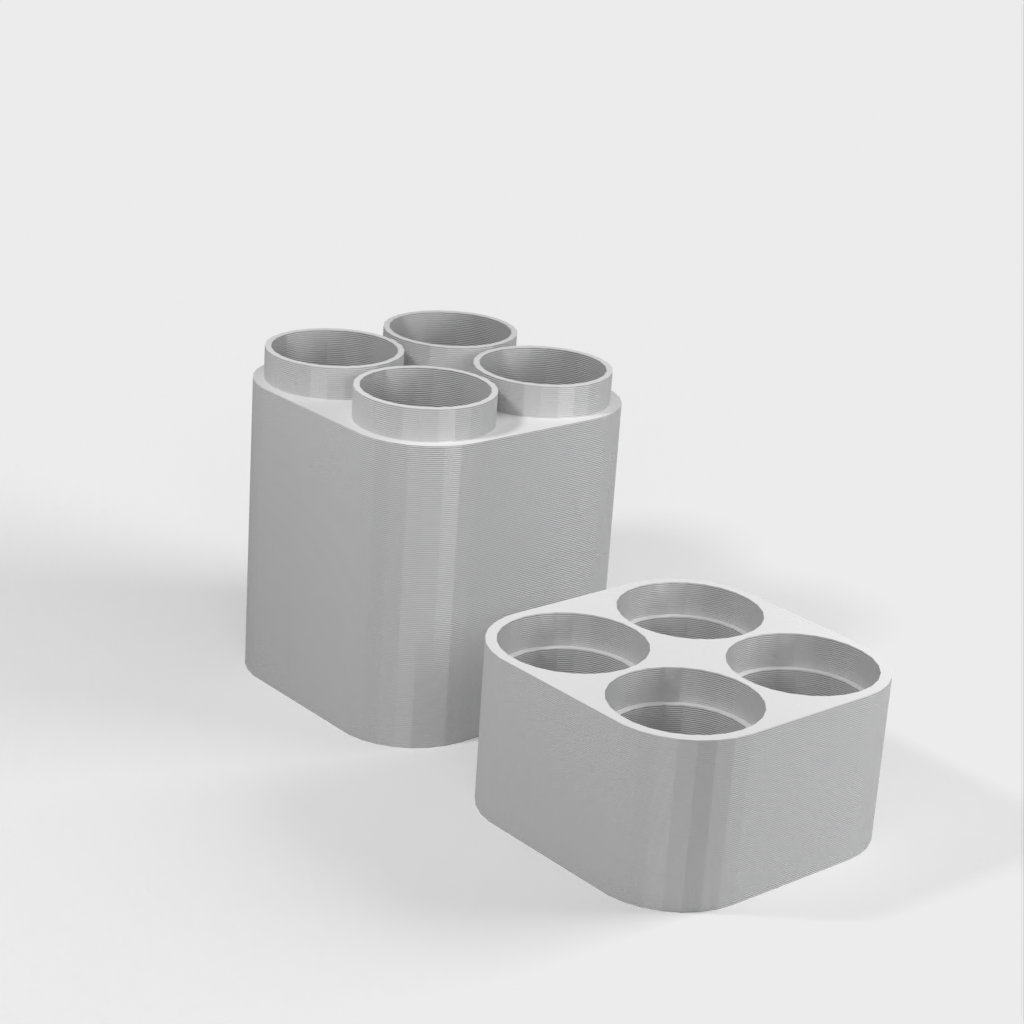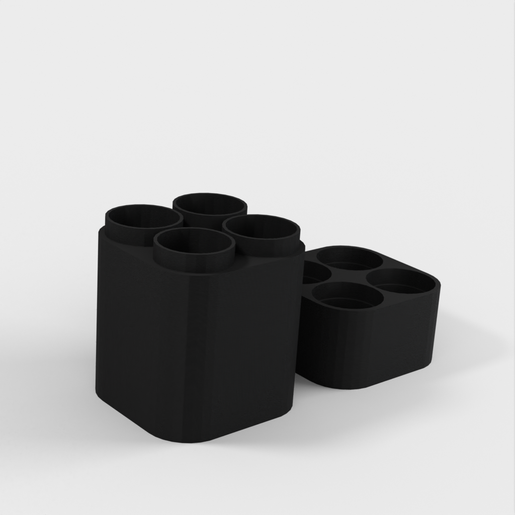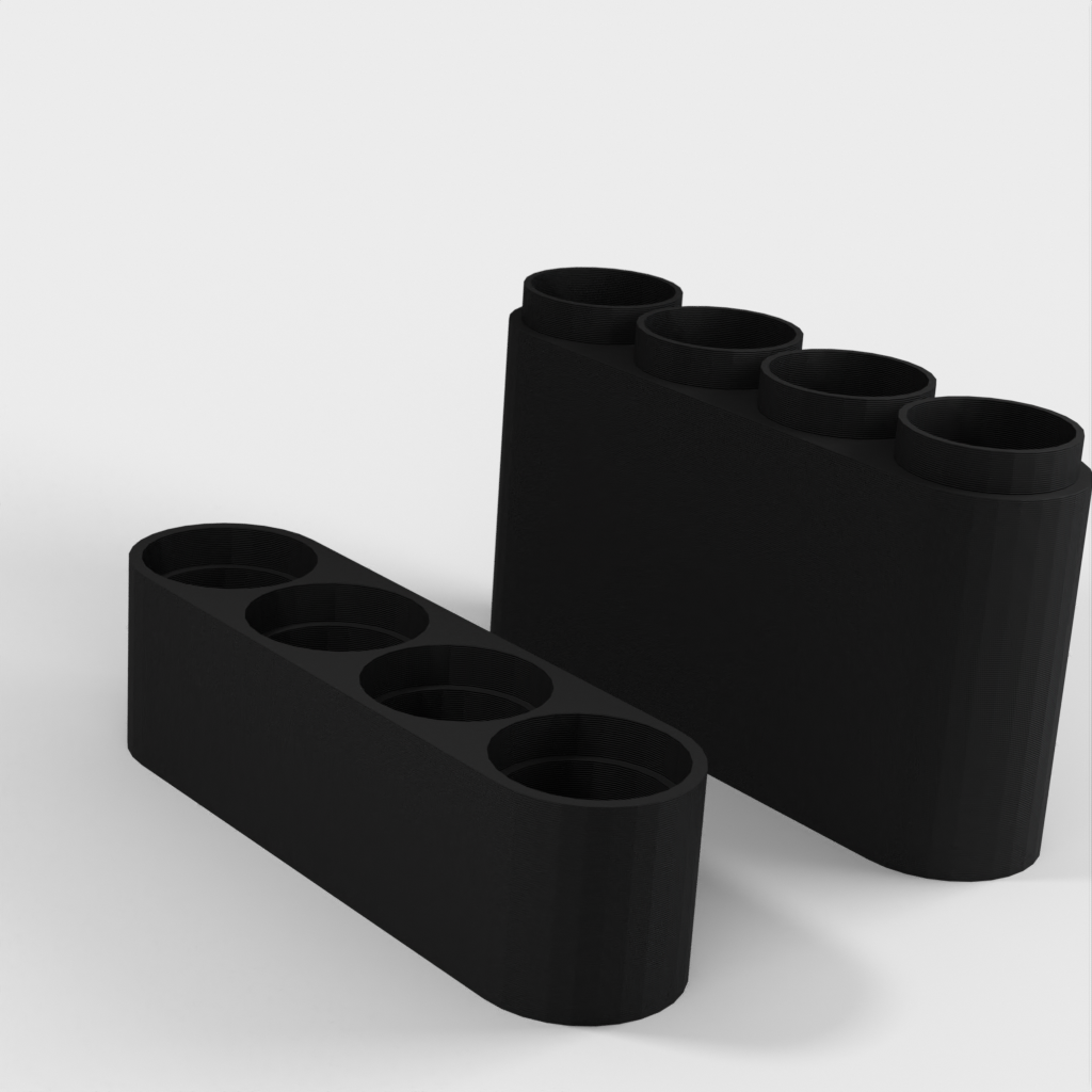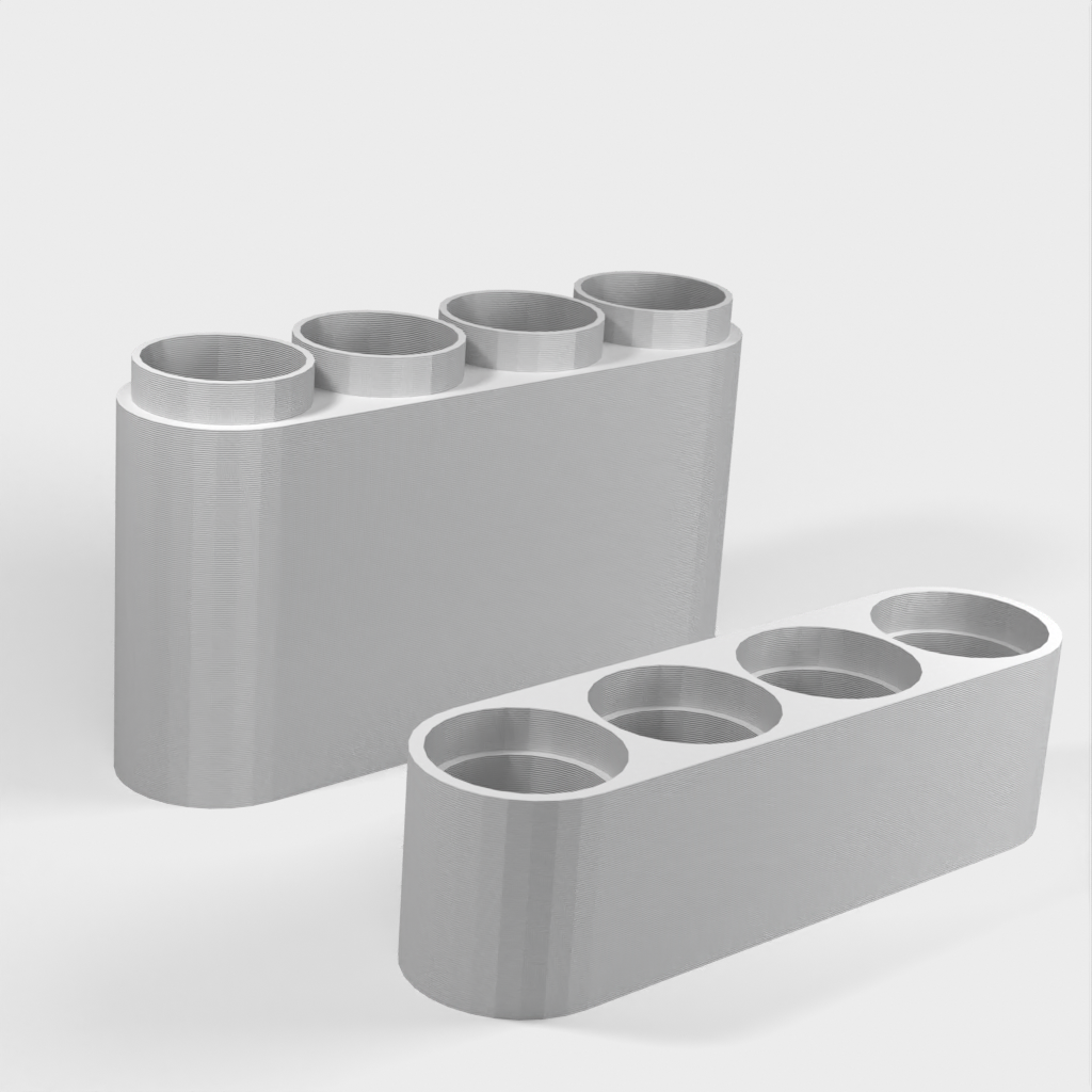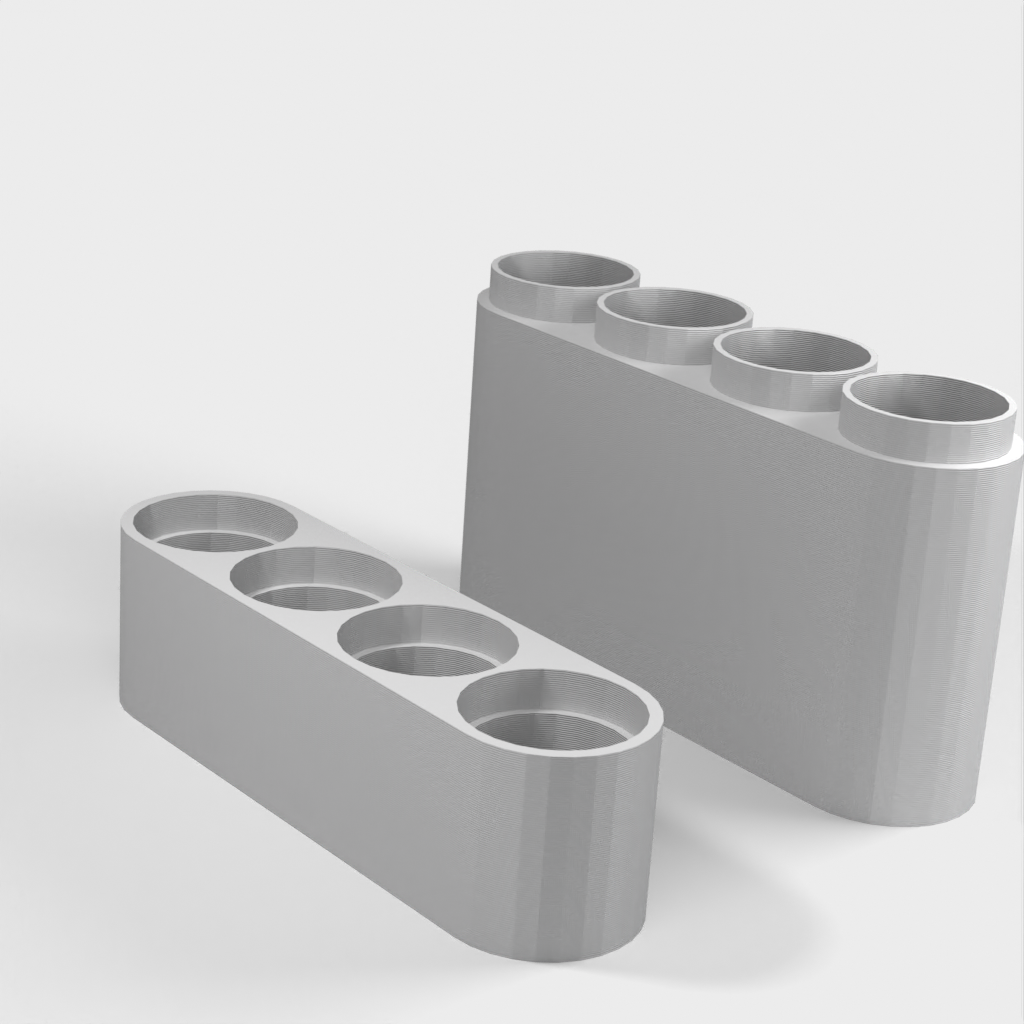 Reishouder voor AA- en AAA-batterijen helpt om je batterijen efficiënt te organiseren. Deze houder kan 2, 4 of 3 batterijen bevatten, in een lineaire of 2x2 matrix. De houder bestaat uit een boven- en een onderstuk en maakt gebruik van een eenvoudige vuistregel: Als de kleine inkeping naar boven wijst, is de batterij opgeladen.