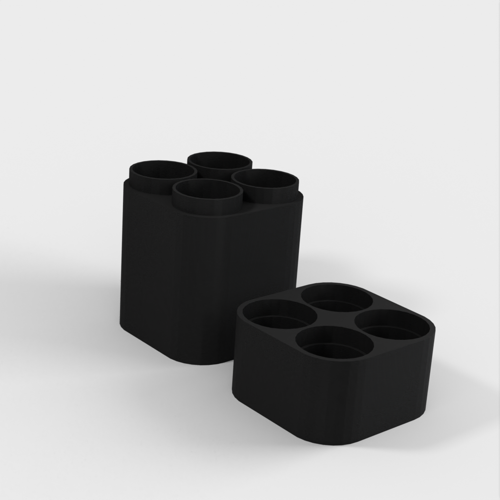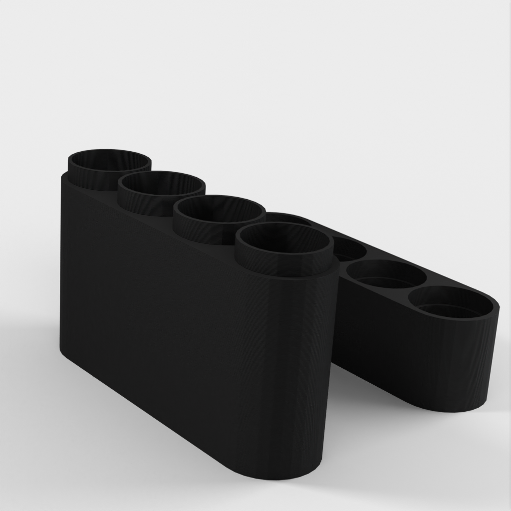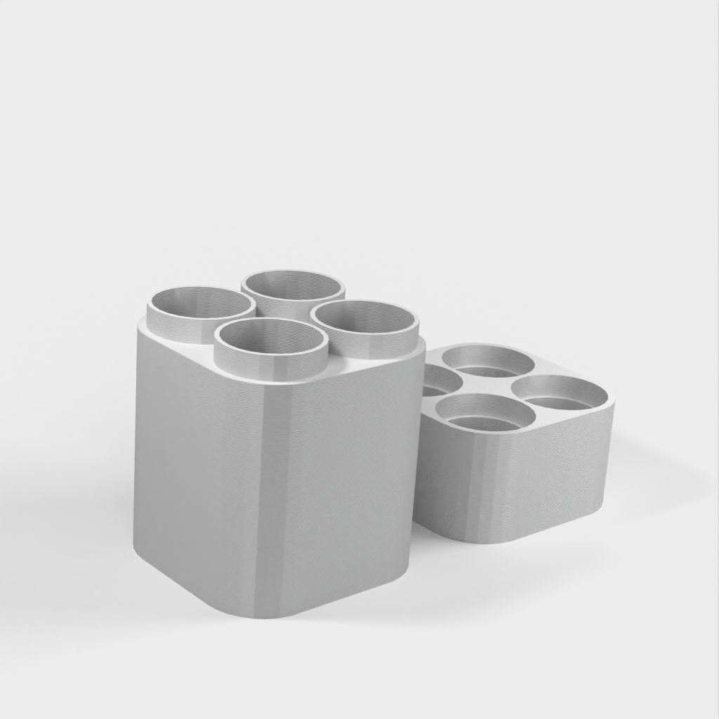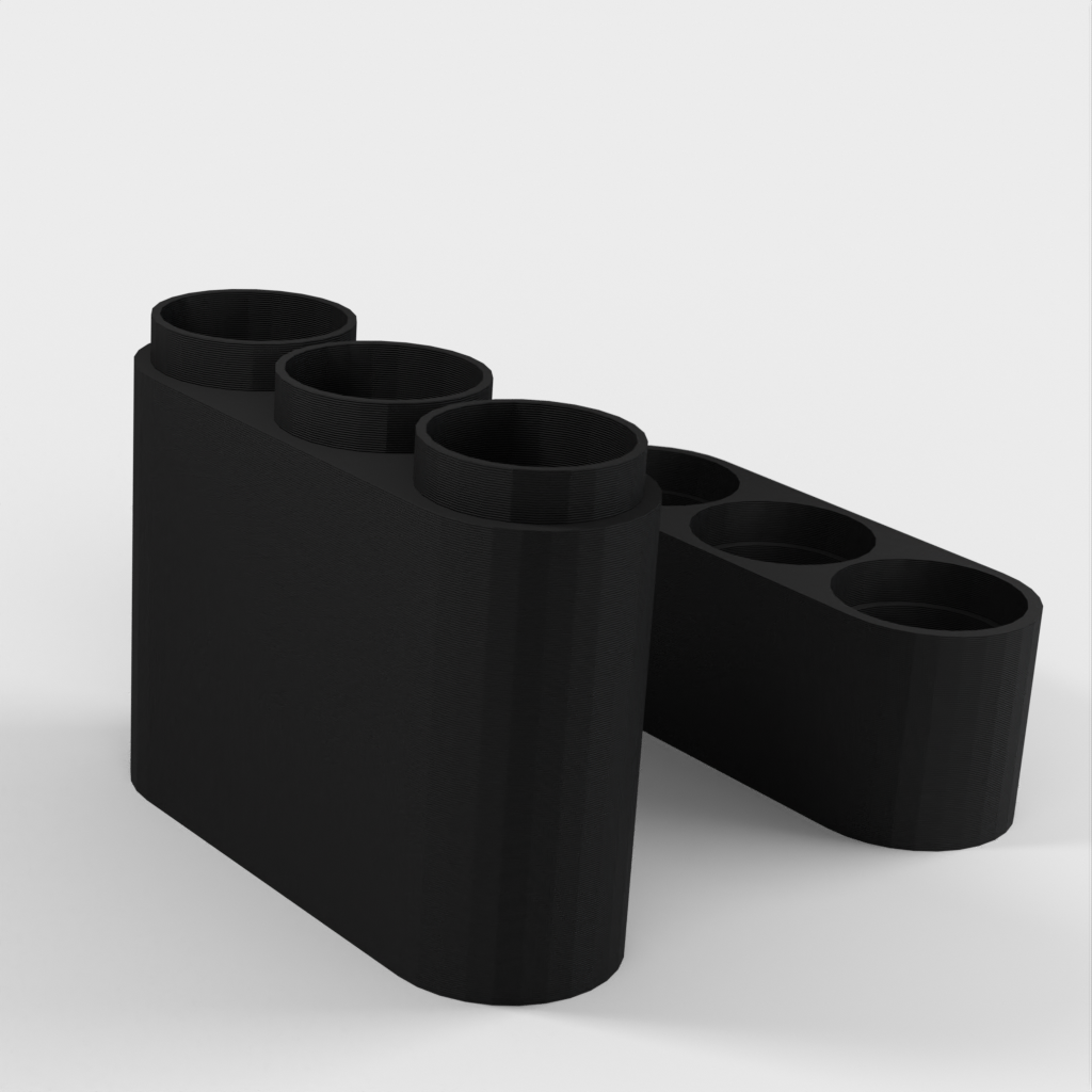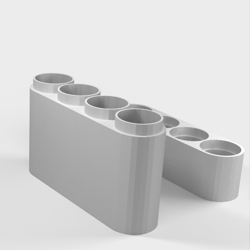 Reishouder voor AA- en AAA-batterijen helpt om je batterijen efficiënt te organiseren. Deze houder kan 2, 4 of 3 batterijen bevatten, in een lineaire of 2x2 matrix. De houder bestaat uit een boven- en een onderstuk en maakt gebruik van een eenvoudige vuistregel: Als de kleine inkeping naar boven wijst, is de batterij opgeladen.