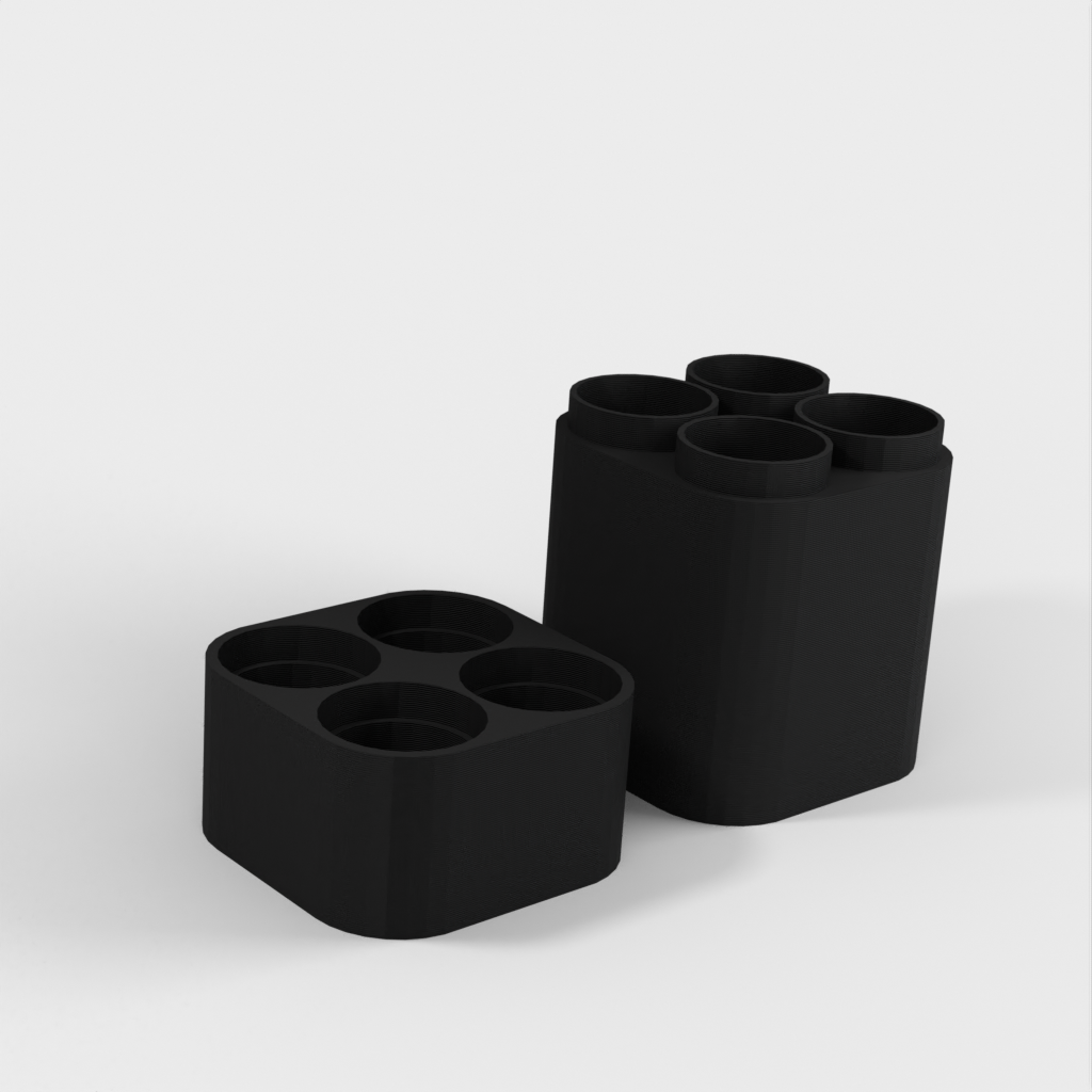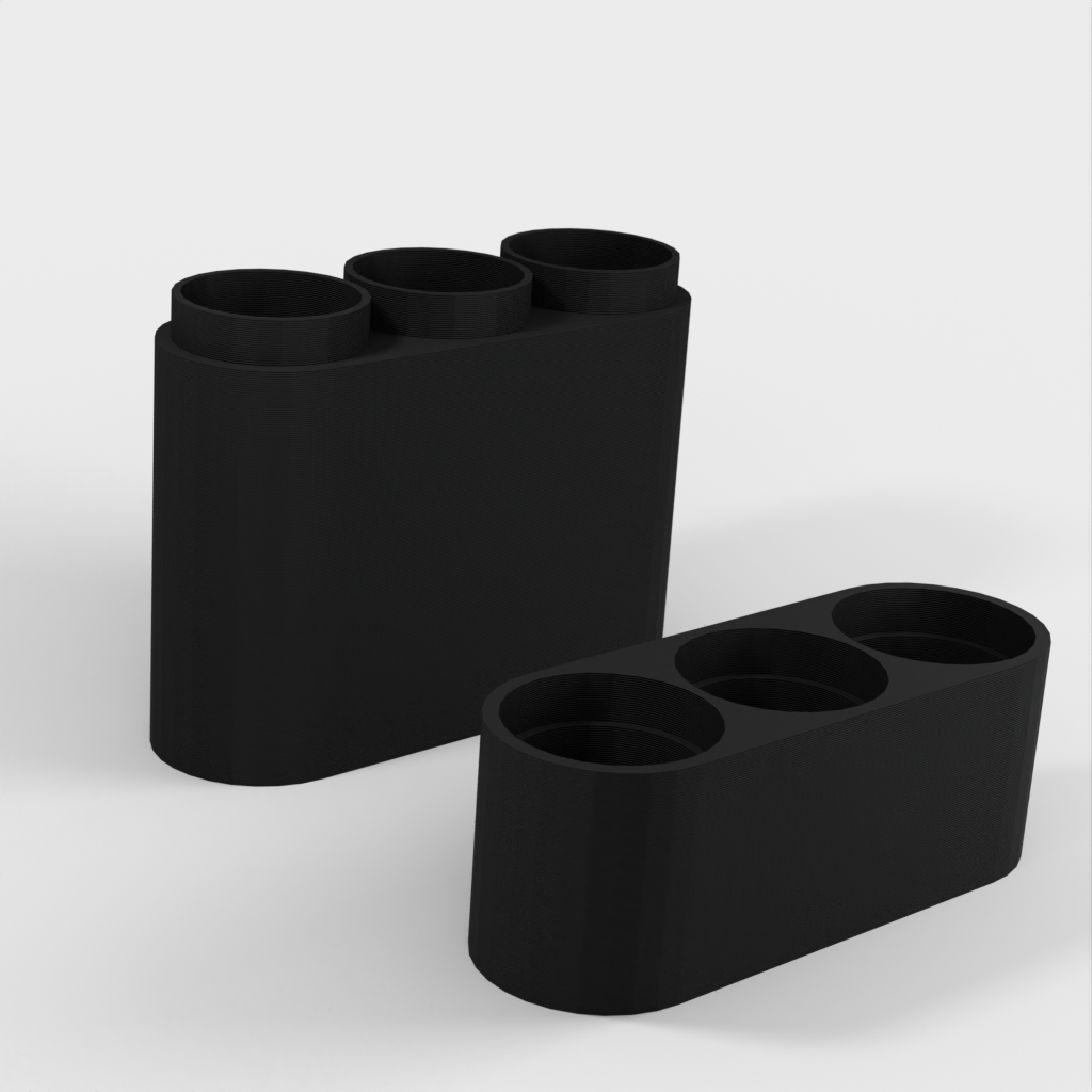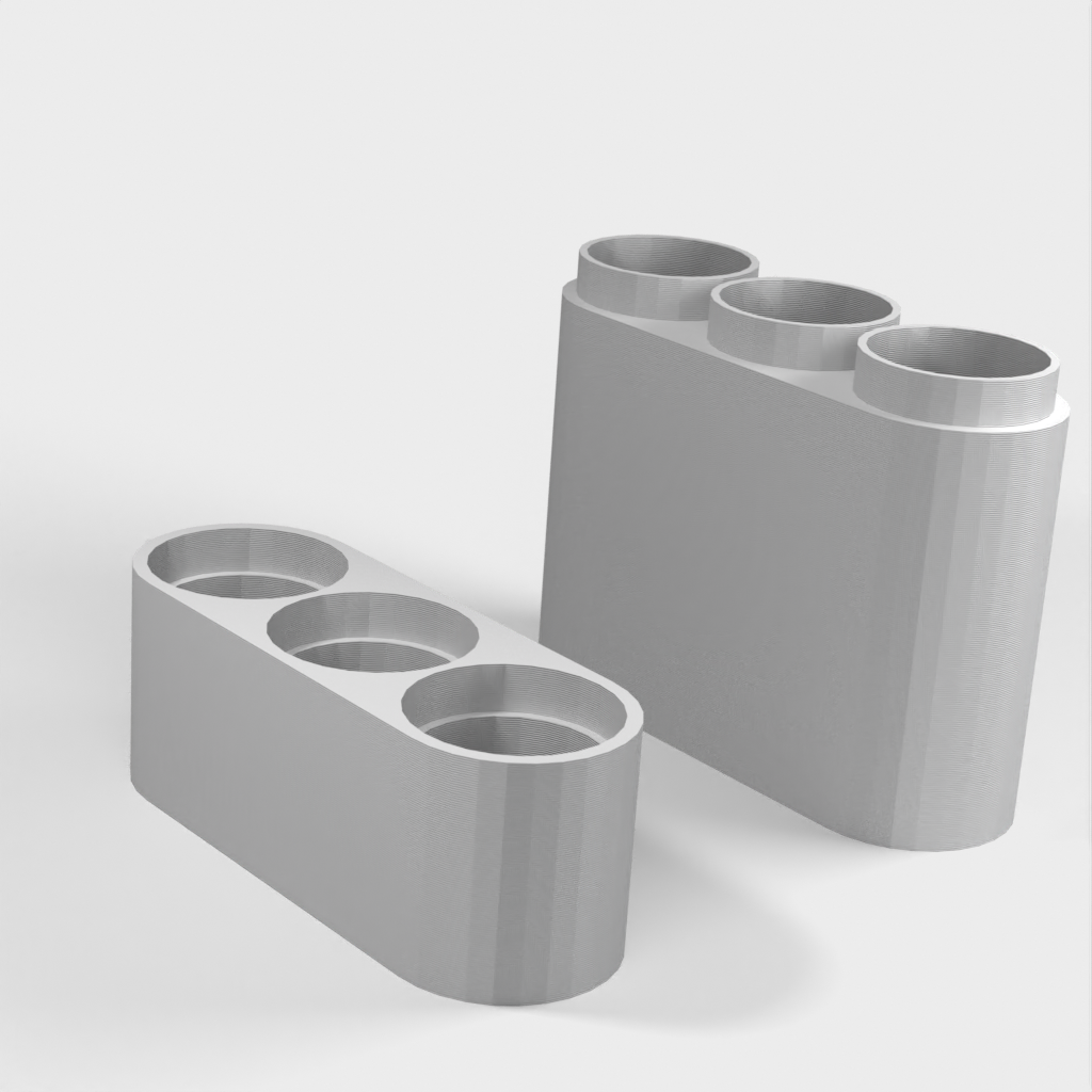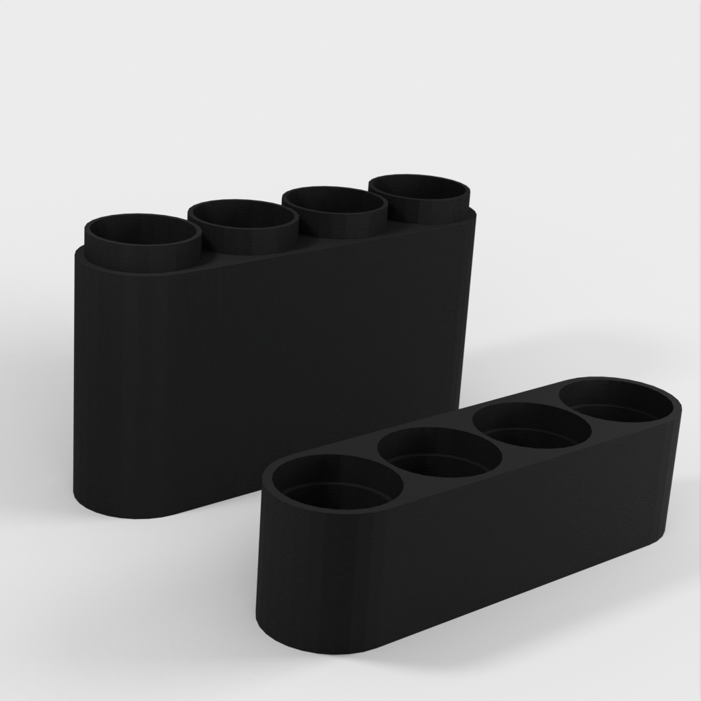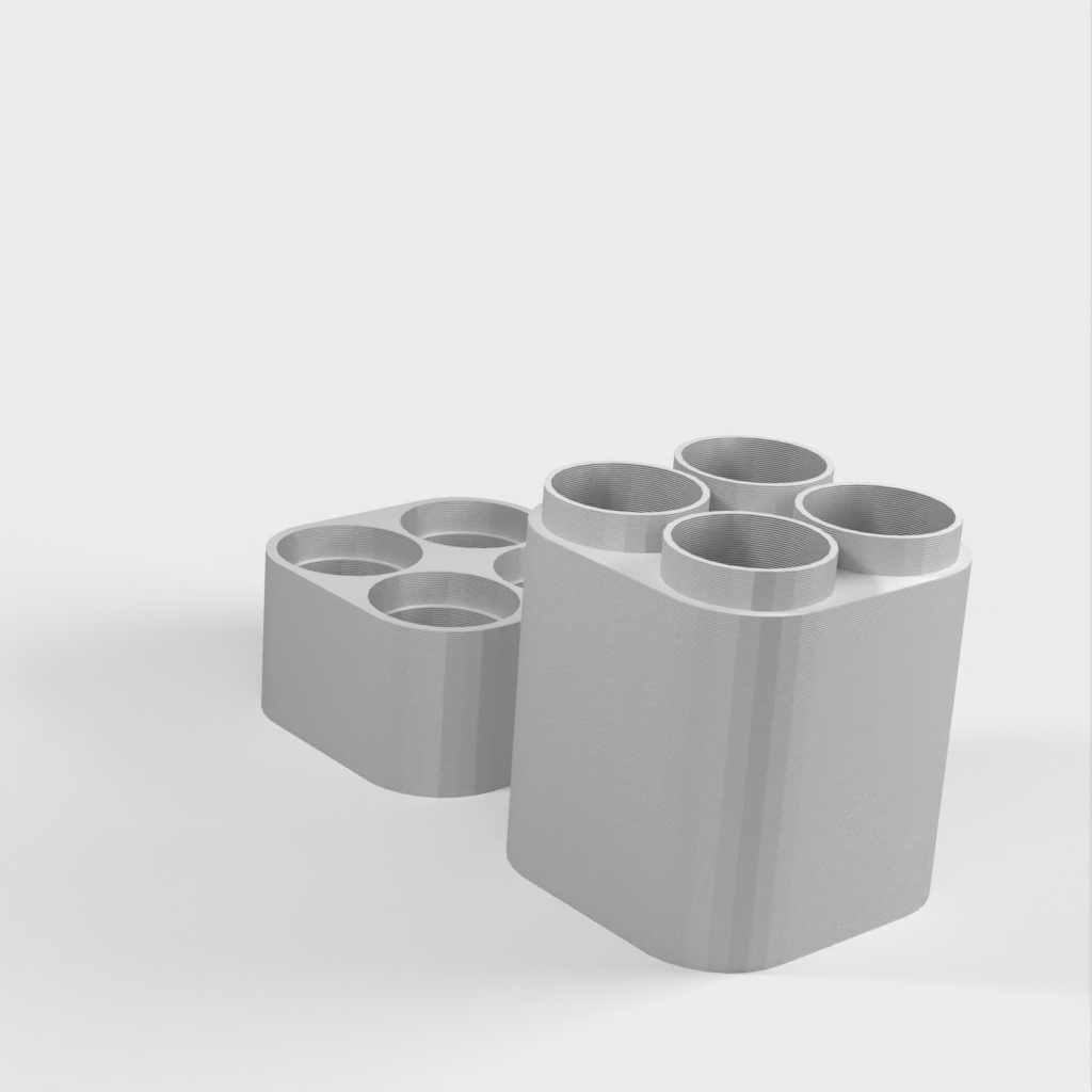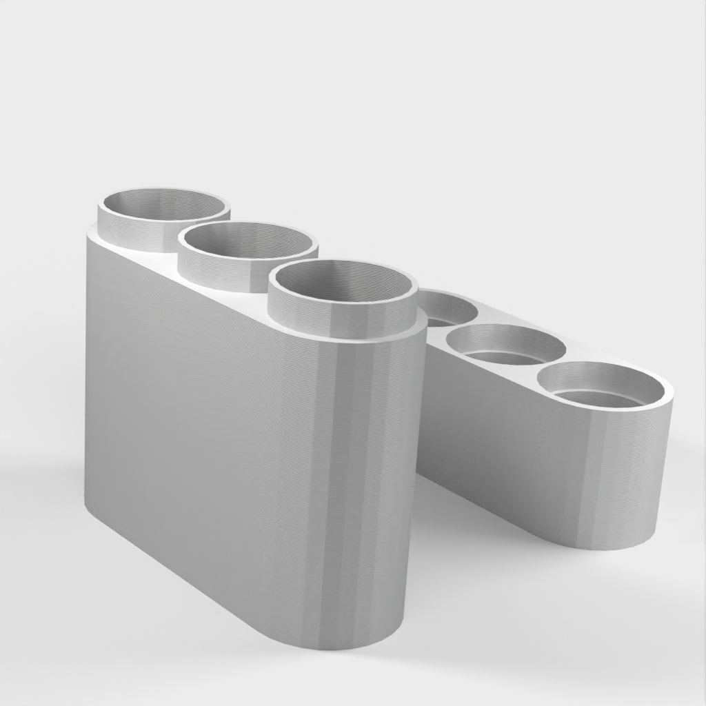 Reishouder voor AA- en AAA-batterijen helpt om je batterijen efficiënt te organiseren. Deze houder kan 2, 4 of 3 batterijen bevatten, in een lineaire of 2x2 matrix. De houder bestaat uit een boven- en een onderstuk en maakt gebruik van een eenvoudige vuistregel: Als de kleine inkeping naar boven wijst, is de batterij opgeladen.