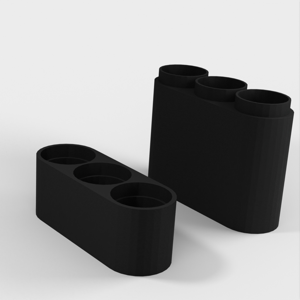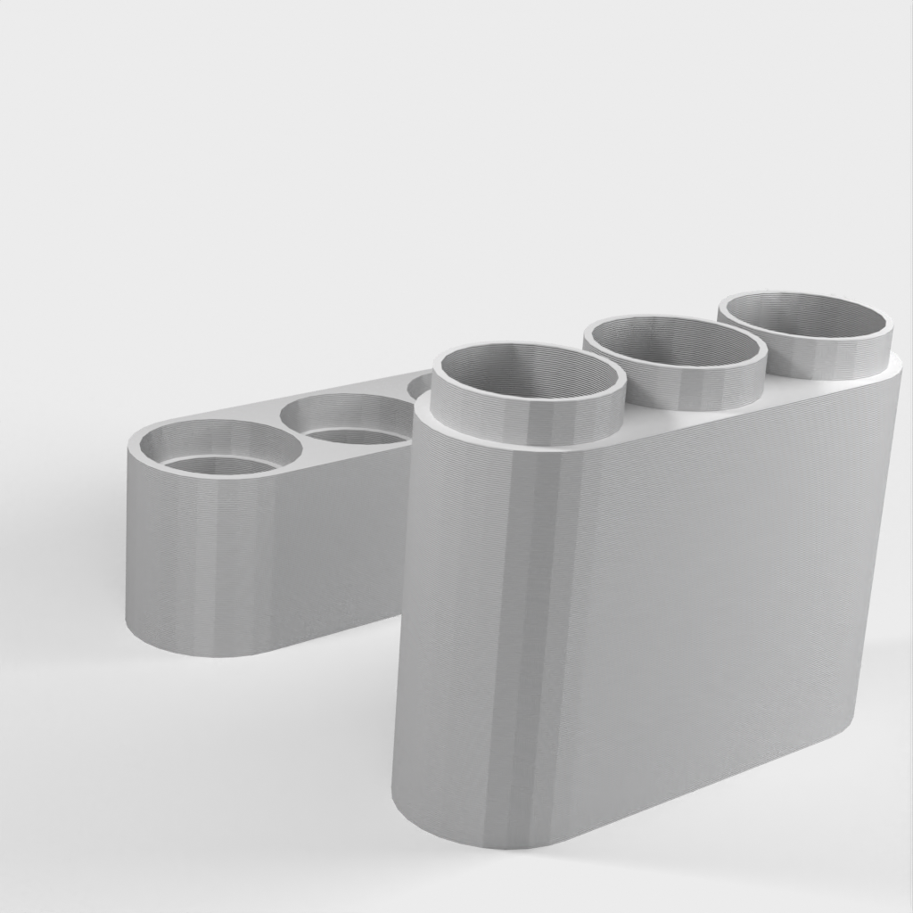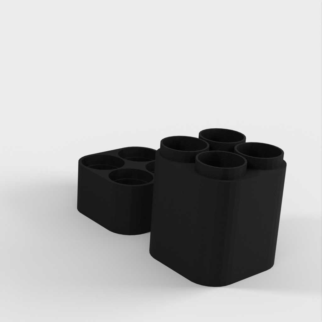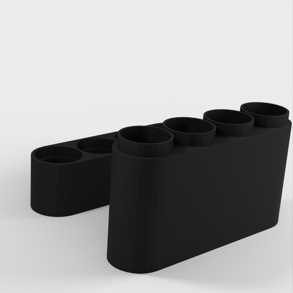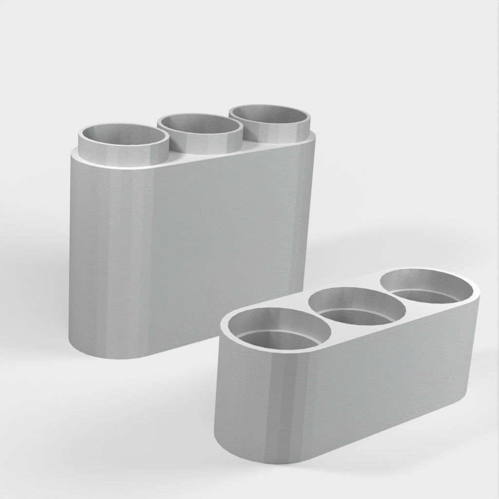 Reishouder voor AA- en AAA-batterijen helpt om je batterijen efficiënt te organiseren. Deze houder kan 2, 4 of 3 batterijen bevatten, in een lineaire of 2x2 matrix. De houder bestaat uit een boven- en een onderstuk en maakt gebruik van een eenvoudige vuistregel: Als de kleine inkeping naar boven wijst, is de batterij opgeladen.