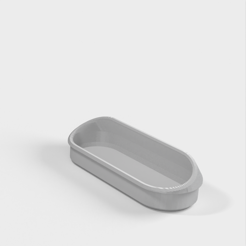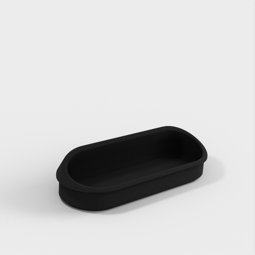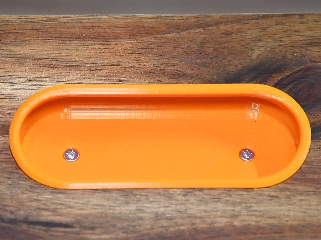 Dit is een ladehandvat om te remixen, met alle dank aan de originele ontwerper, chappel. Ik heb enkele wijzigingen aangebracht in deze versie. De afmetingen van de ladegreep zijn veranderd in 90mmx36mm en ik heb een variant toegevoegd waarbij de handgrepen met twee schroeven gemonteerd kunnen worden in plaats van ze op de lade te lijmen. Ik lever beide varianten.