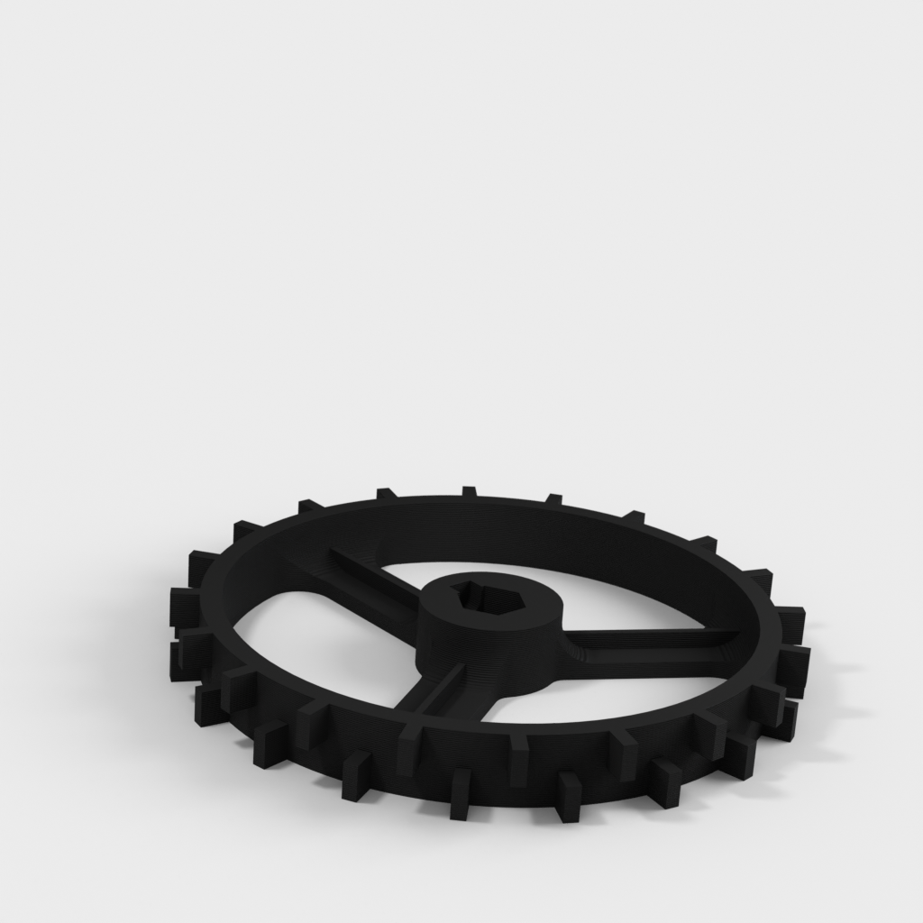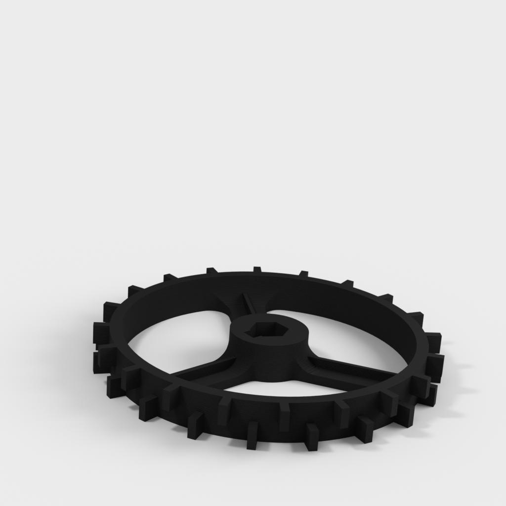 Upgrade uw doe-het-zelf robotmaaierproject met dit duurzame en functionele wiel. Het is ontworpen om te passen op het chassis van 'mwetterlind' en is ideaal voor het leveren van stabiliteit en beweging aan uw robotmaaier. Of u nu de specifieke ontwerp specificaties volgt of experimenteert met andere chassis zoals het 'standaard' Liam chassis, dit wiel helpt ervoor te zorgen dat uw robotmaaier optimaal presteert.