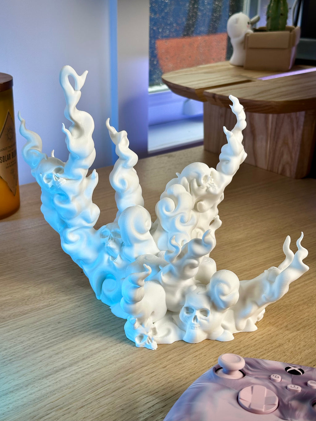 • Unieke houder in de vorm van een schedel met een rokerig, griezelig ontwerp.