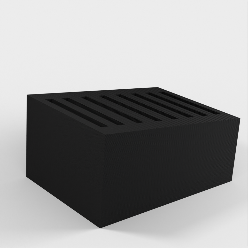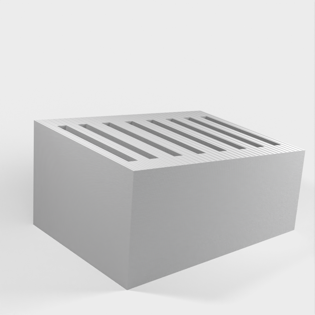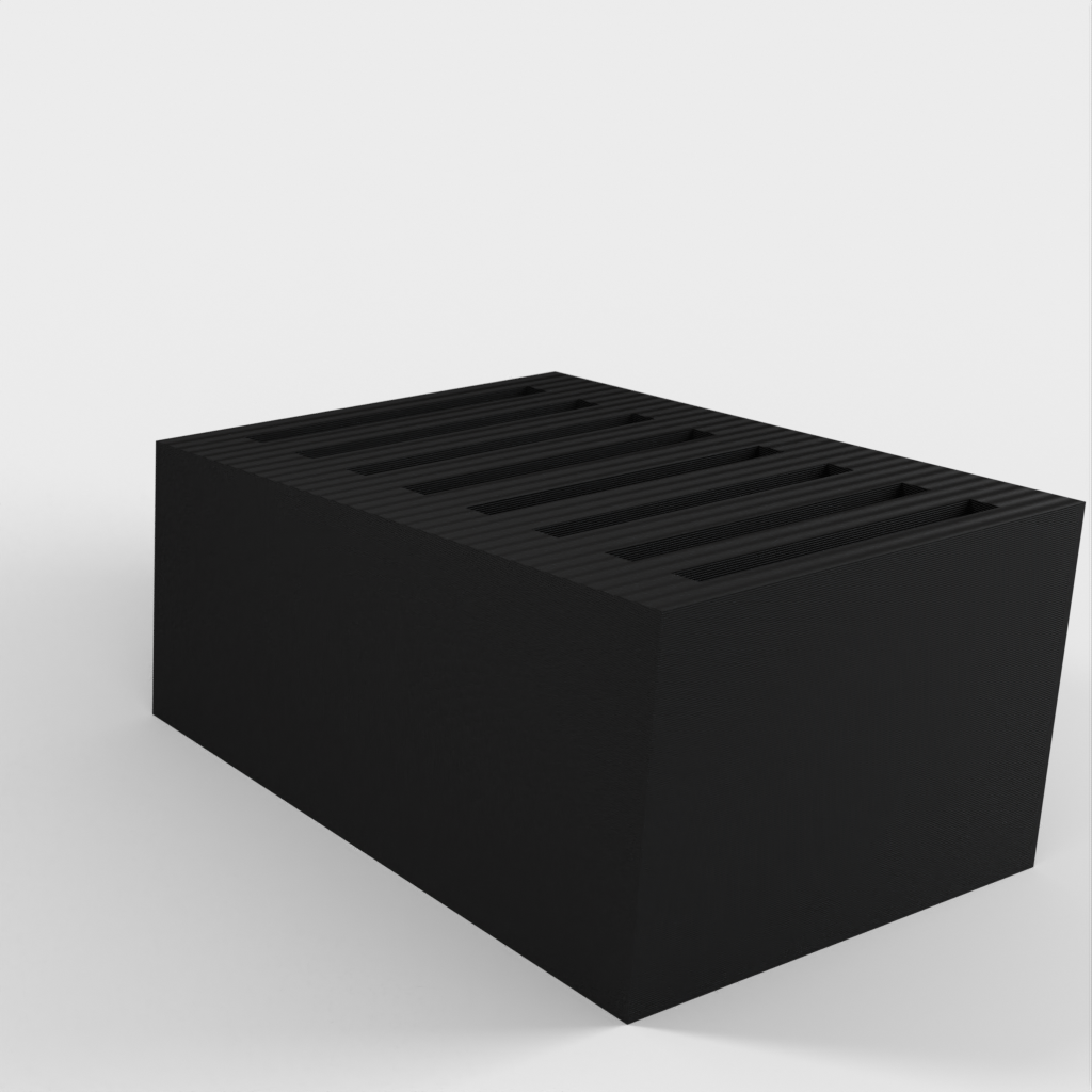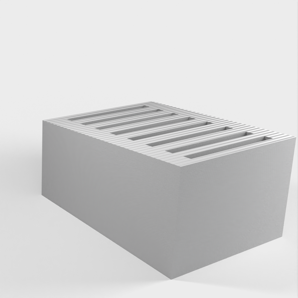 Dit is een eenvoudige SD-kaarthouder waar maximaal 8 SD-kaarten in passen. De sleuven zijn een beetje krap om te voorkomen dat de kaarten eruit vallen als je de houder omkiept. Verder heeft de SD-kaarthouder een heel eenvoudig ontwerp.