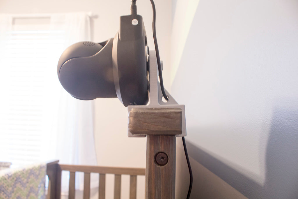 De installatie is eenvoudig, je gebruikt gewoon de duimschroef die bij de originele wandadapter van de camera wordt geleverd om de camera aan de wiegadapter te bevestigen. Om een schone en georganiseerde uitstraling in de kinderkamer te behouden, is de adapter voorzien van een slim gat in de rugleuning waardoor de stroomkabel erdoorheen kan worden gevoerd. Dit helpt om snoeren te verbergen en zorgt voor een meer esthetische opstelling van je babyuitrusting.