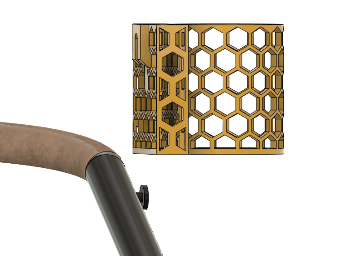 Met zijn honingraatstructuur ziet de houder niet alleen goed uit, maar zorgt hij ook voor kracht en duurzaamheid, wat het een betrouwbare keuze maakt voor ouders onderweg. Het ontwerp is compact en minimalistisch, waardoor het harmonieus samenwerkt met je buggy, zonder te veel ruimte in beslag te nemen.