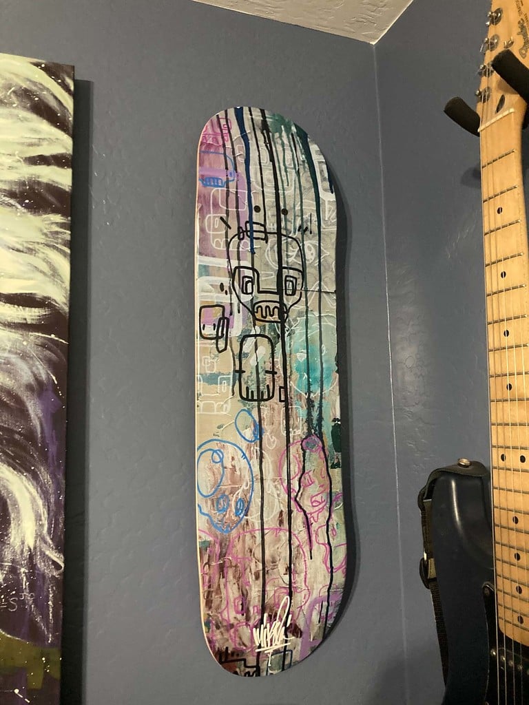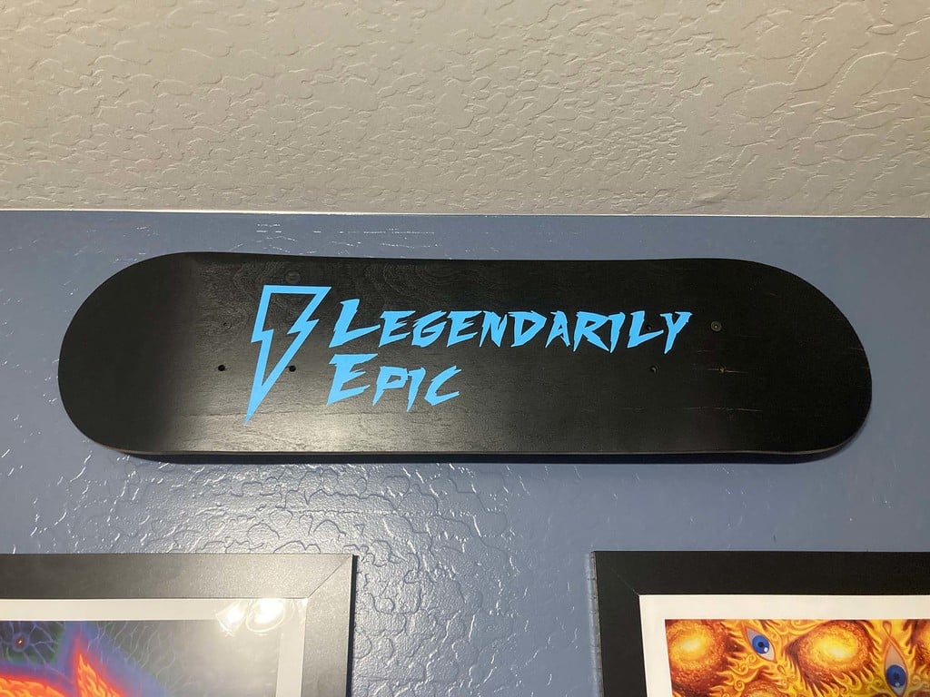 De Skateboard Deck Wall Mount is een wandmontage voor skateboarddecks. Gebruik er één om een deck verticaal te houden, of twee om een deck horizontaal te houden. De montagegaten zijn uitgelijnd met de montagegaten van het deck, zodat er een schroevendraaier helemaal doorheen kan worden geplaatst, zoals op de afbeelding te zien is. Standaard skateboardhardware werd gebruikt om het deck aan de montage te bevestigen.