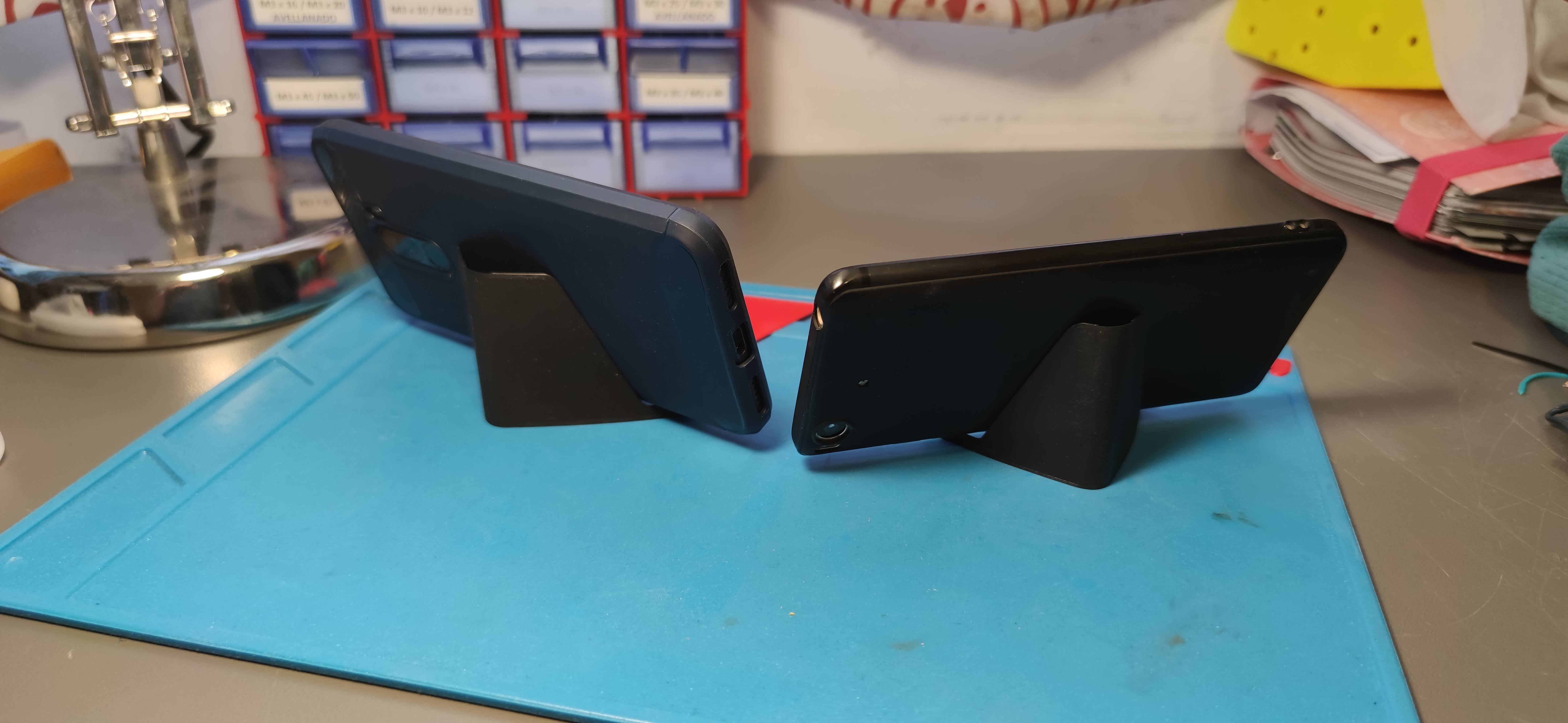 Dit is een draagbare en lichtgewicht telefoonhouder die onder je telefoonhoesje past. Perfect voor kinderen als je onderweg bent en je je telefoon op de een of andere manier moet vasthouden. Ondanks de ogenschijnlijke kwetsbaarheid is hij erg stevig en houdt hij de telefoon perfect vast. Je kunt de kijkhoek veranderen door de pootjes te sluiten of te openen. Er zijn twee versies beschikbaar, een voor grote telefoons (6-7 inch) en een voor kleine telefoons (4-5 inch), dus je kunt kiezen welke het beste bij jouw telefoon past.