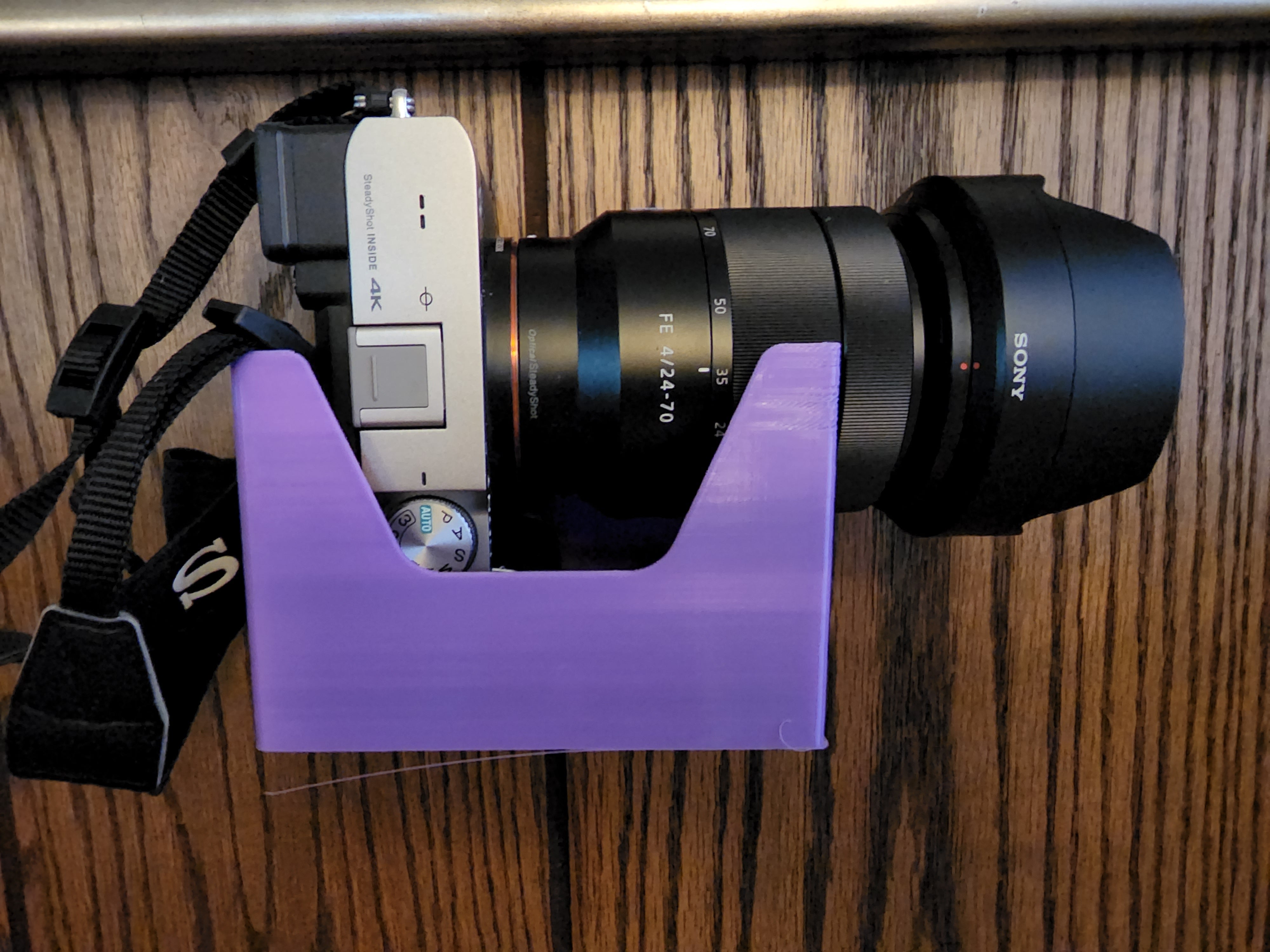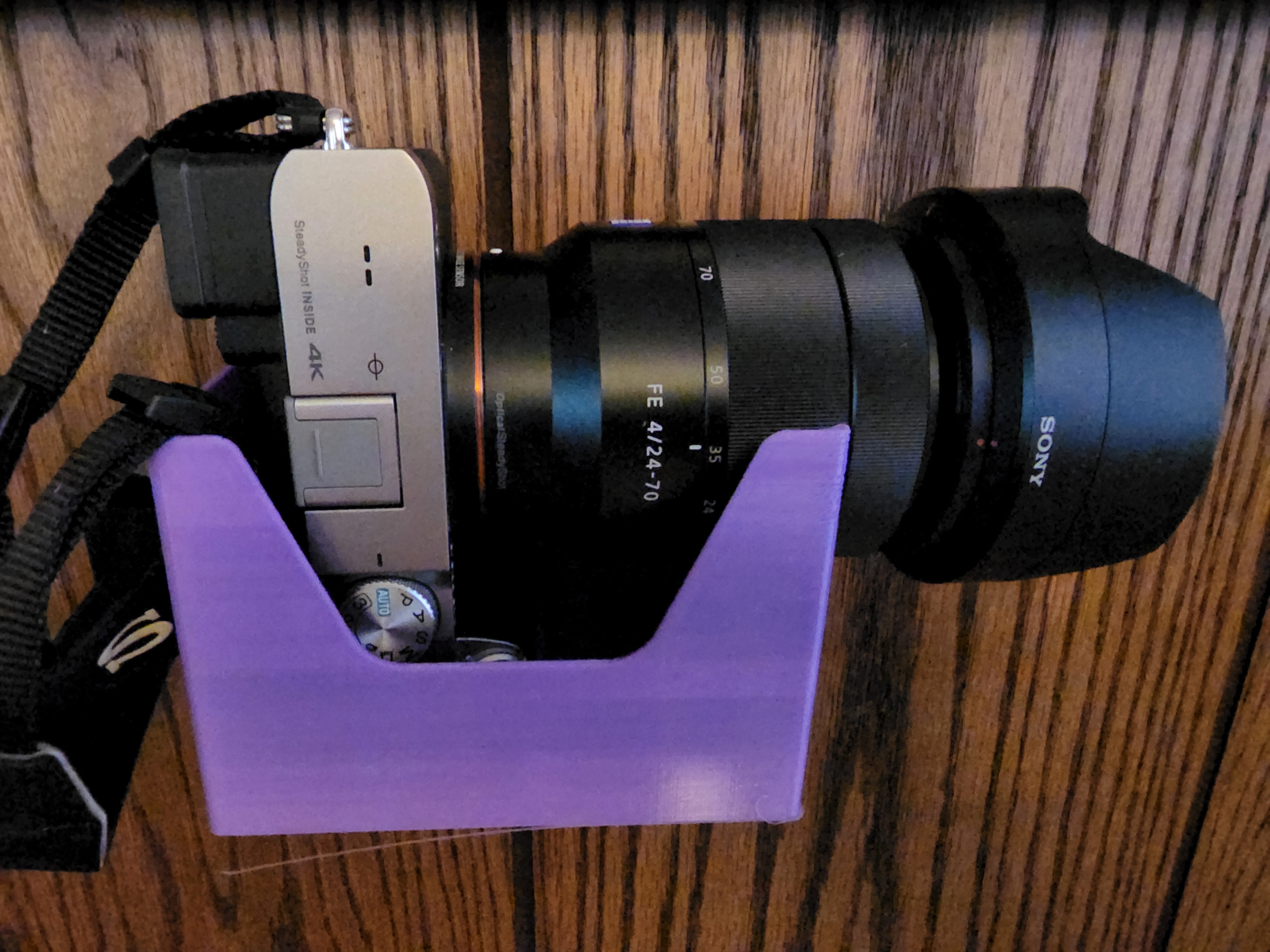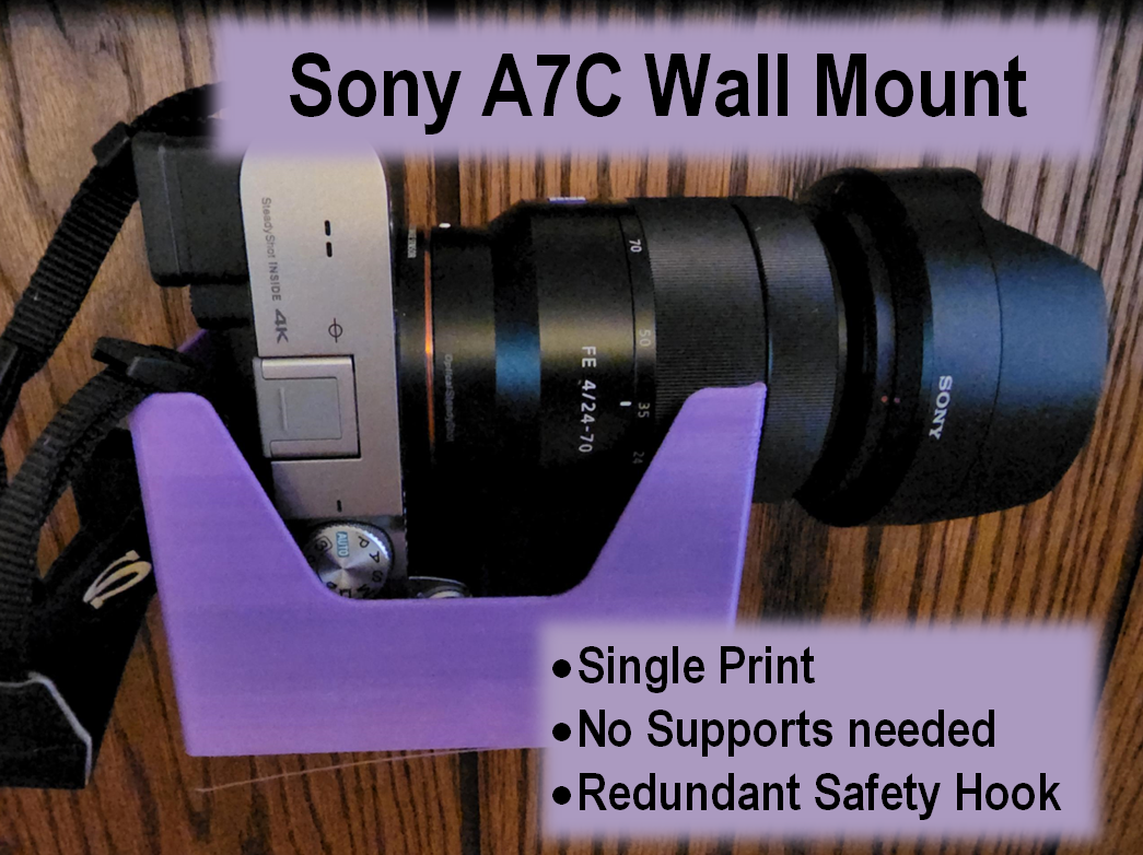 Dit is een eenvoudige muurbeugel voor je Sony A7C camera (en waarschijnlijk ook andere modellen). Het helpt om de camera buiten bereik van de kleintjes te houden en maakt hem handig bereikbaar voor spontane fotomomenten.