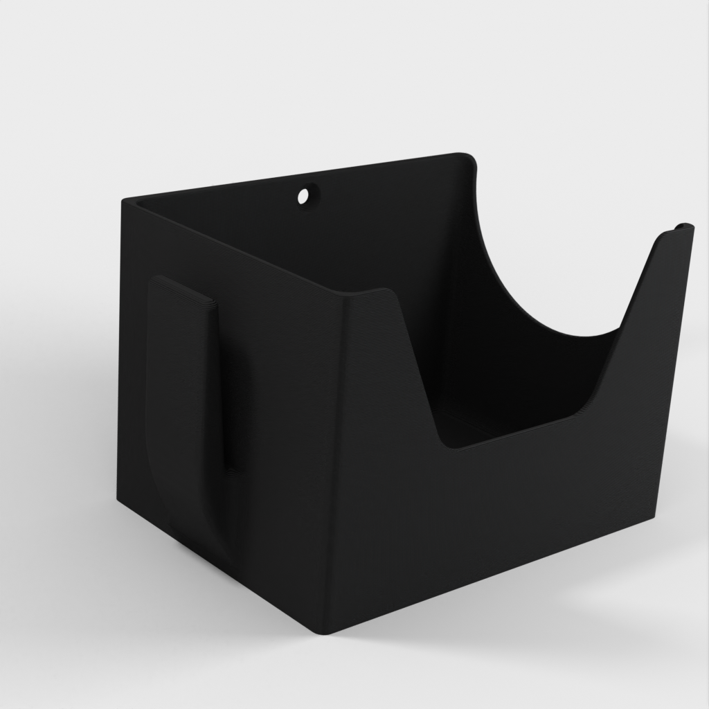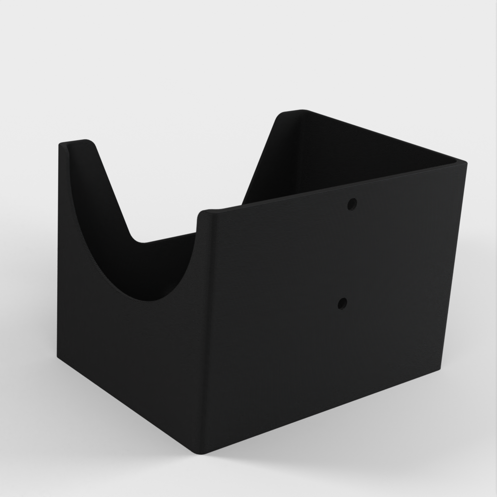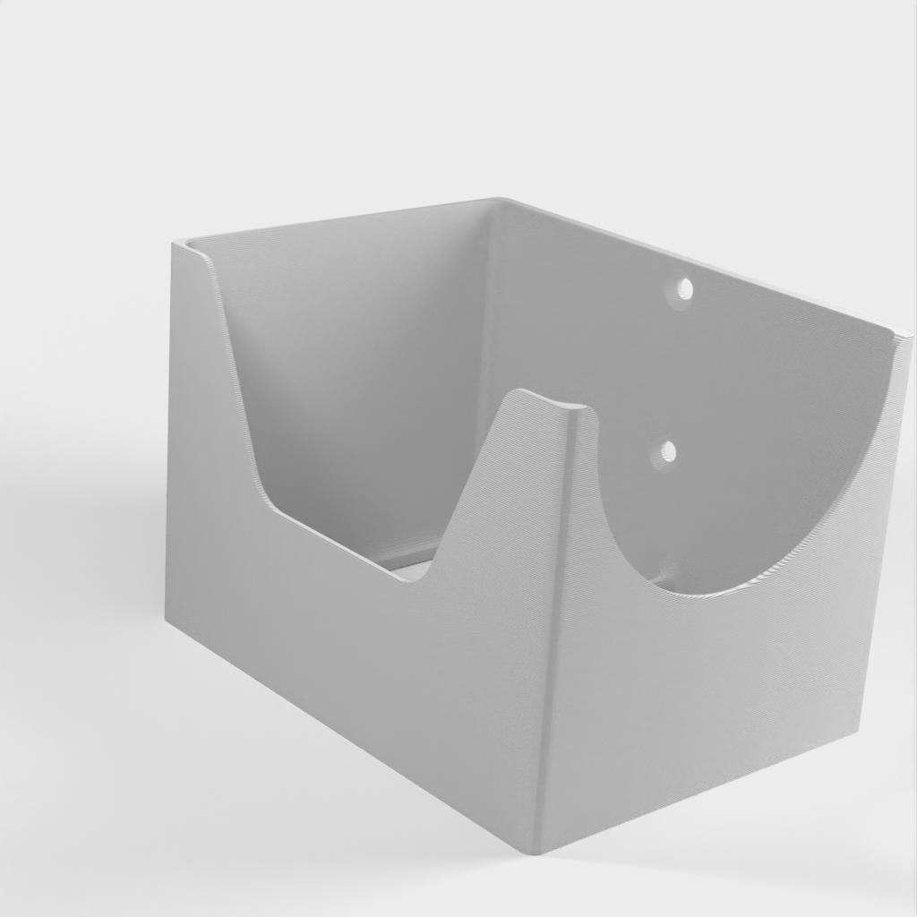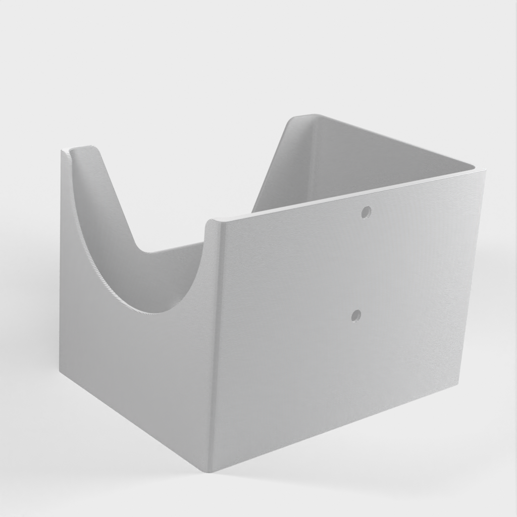 De houder kan met 1 of 2 schroeven aan de muur worden bevestigd en bevat een back-up haak voor de nekriem voor het geval deze uit je hand glipt wanneer je hem in de houder doet of uit de houder haalt. (Het is belangrijk dat je eerst de nekriem omdoet om deze redundantie beperking effectief te laten zijn).