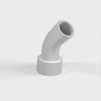 Bij later gebruik van de koppeling ontdekte ik dat er een probleem kon ontstaan als er onvoldoende ruimte achter de zaag was voor het stijve deel van de stofzuigerslang. Om dit op te lossen heb ik het opnieuw ontworpen met een bocht, zodat het rechtstreeks op de flexibele slang kan worden aangesloten en het stijve deel kan worden omzeild.
