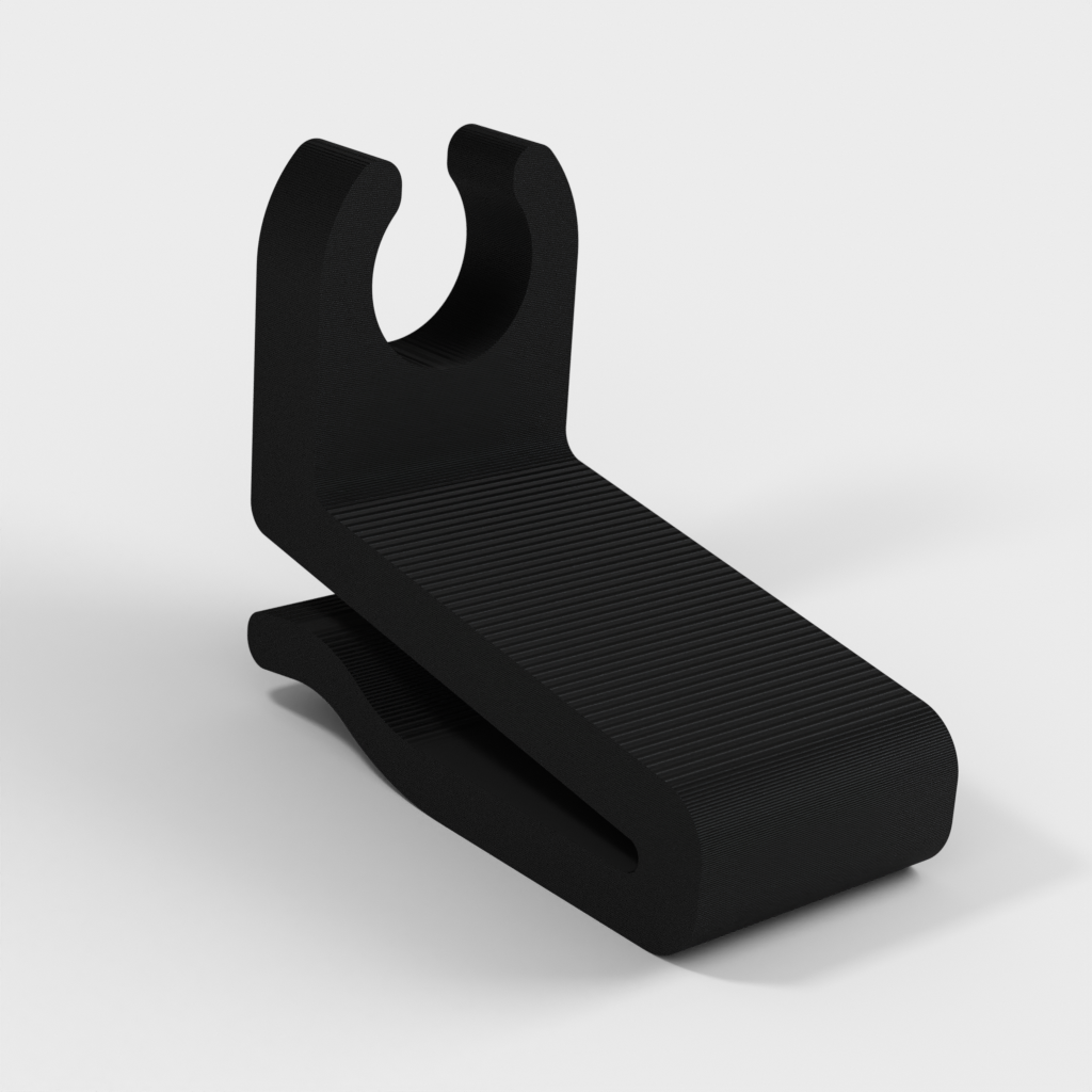Enkele Boya M1 (Lavalier) Microfoon Shirt Clip. Deze clip is perfect voor t-shirts en kan eenvoudig aan de kraag worden bevestigd, waar hij de microfoon moeiteloos rechtop houdt. Zou compatibel moeten zijn met elke lavalier microfoon met een hals van ongeveer 6 mm en een relatief kleine kop.