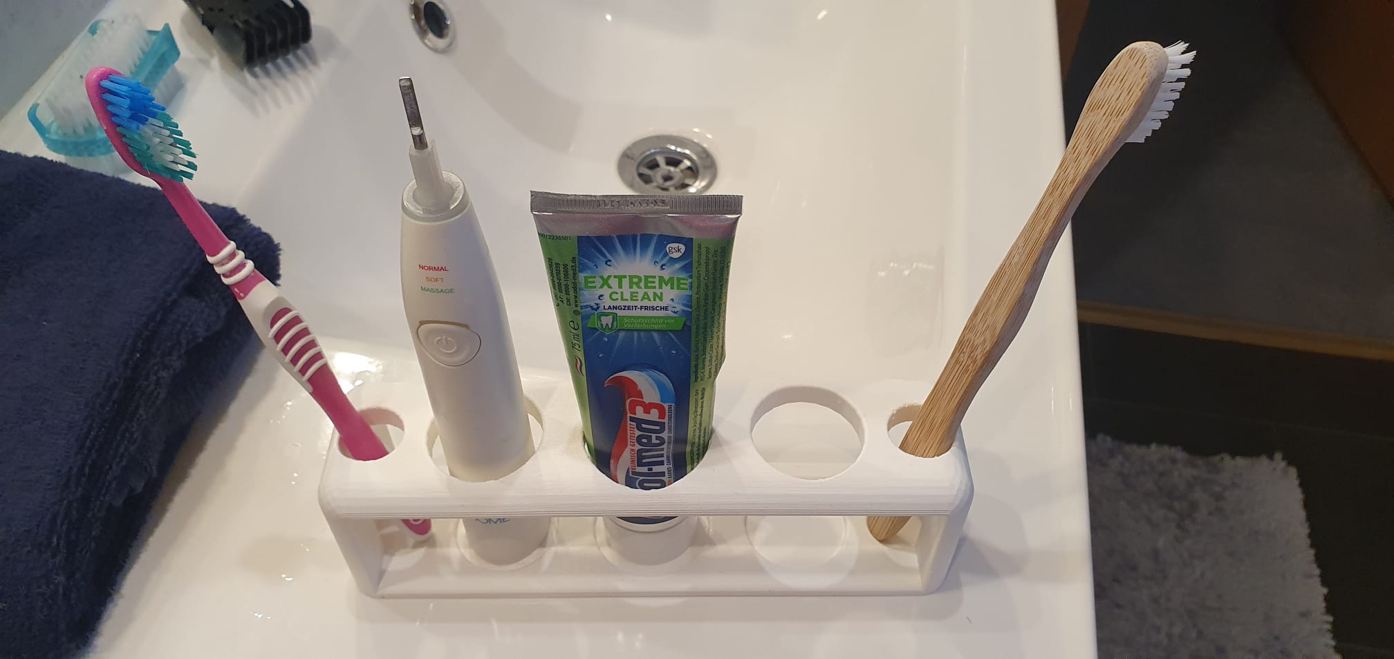 Tandenborstelhouder voor 2 normale en 2 elektrische tandenborstels met ruimte voor tandpasta