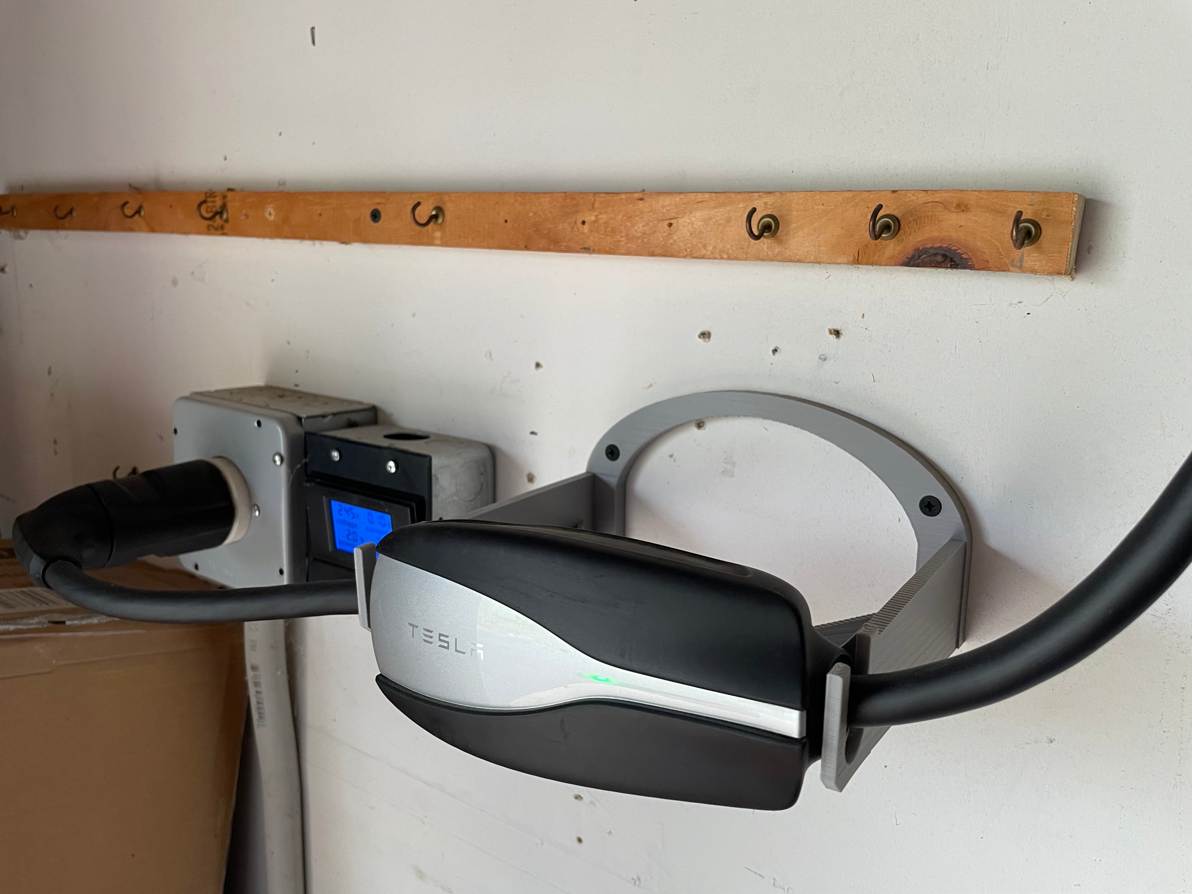 Deze wandmontage voor uw Tesla Universal Mobile Connector (UMC) is ontworpen om een optimale en veilige opslag van uw laadapparatuur te bieden. Door de UMC horizontaal op de juiste afstand van de muur te houden, wordt de belasting van de laadkabel geminimaliseerd, wat bijdraagt aan het verlengen van de levensduur van de kabel en het in stand houden van een nette installatie.