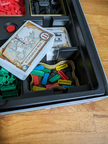 Door deze organisatieoplossing te gebruiken, wordt de ruimte in de speldoos optimaal benut en worden je spelcomponenten netjes bij elkaar gehouden en georganiseerd. Het is een functionele doos die bijdraagt aan het overzichtelijk en gebruiksklaar houden van je Ticket To Ride-spel, zodat je je volledig kunt concentreren op het routenetwerk en de strategie.