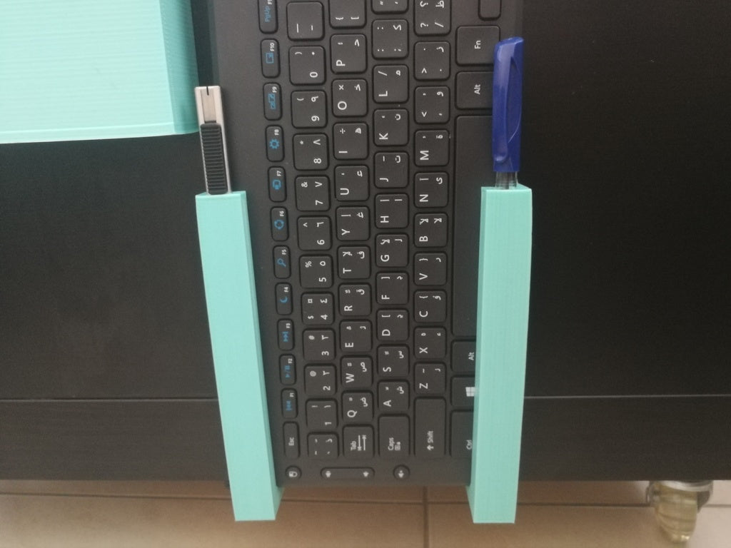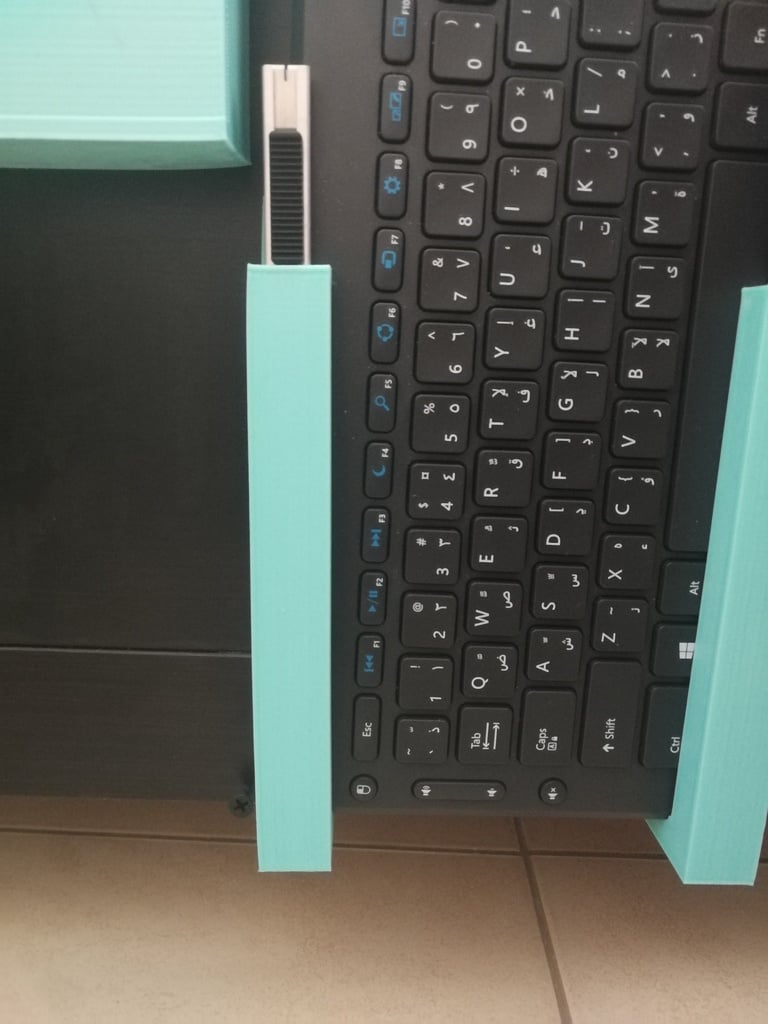 Het is een tweedelige print, zodat u het kunt aanpassen aan elke toetsenbordgrootte. Houd er rekening mee dat de twee delen niet symmetrisch zijn; de ene kant is breder dan de andere om de gebogen vorm van het toetsenbord te kunnen herbergen. U kunt het eventueel in elke 3D-ontwerp-app importeren om het aan uw wensen aan te passen.