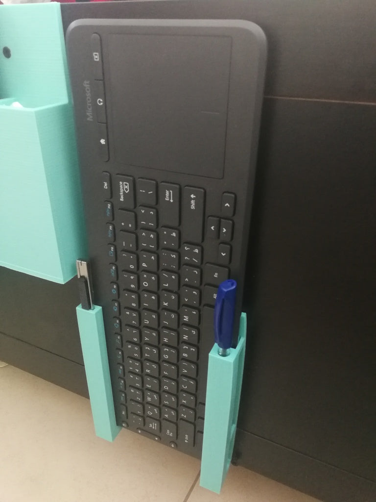 Dit is een toetsenbordhouder die op uw salontafel kan worden gemonteerd om gemakkelijke toegang te garanderen, zonder dat deze ruimte op de tafel inneemt. Het kan worden gebruikt met elk toetsenbord dat met een tv wordt gebruikt.