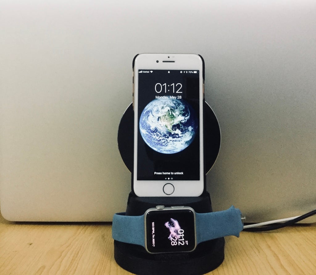 Oplaadstation voor iPhone en Apple Watch met ondersteuning voor bekabeld en draadloos opladen