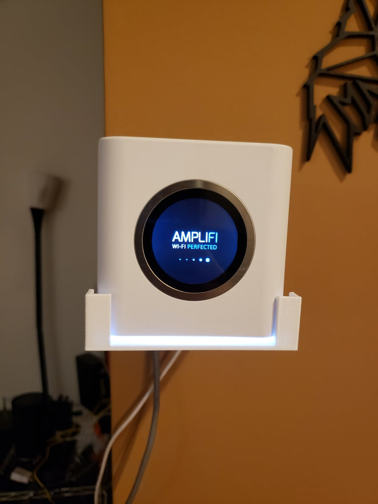 Dit is een muurbeugel bedoeld voor de Ubiquiti AmpliFi HD-router. De beugel is eenvoudig te printen en te installeren en heeft ingebouwde functies voor het beheer van draden. Het ontwerp is eenvoudig maar effectief en werkt perfect om uw router op zijn plaats te houden.