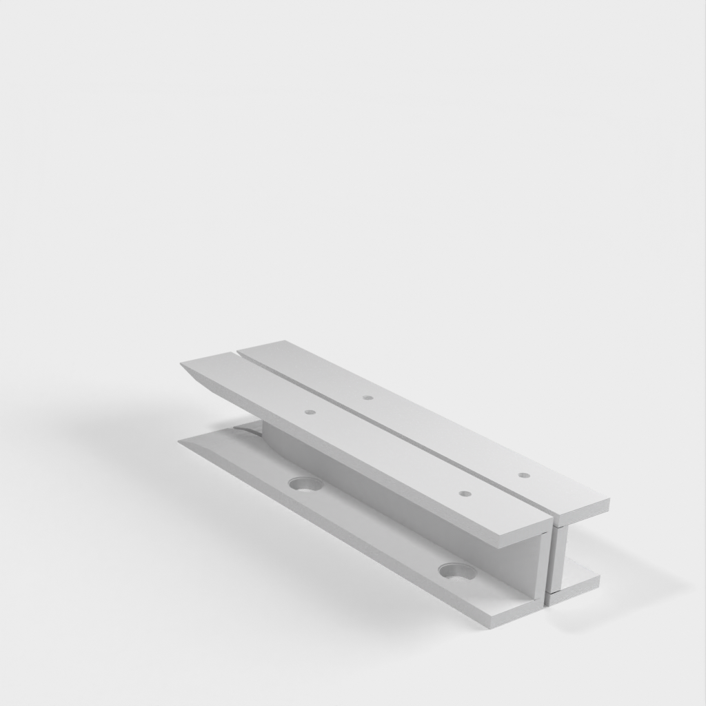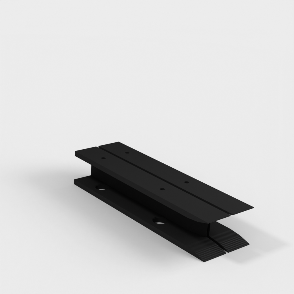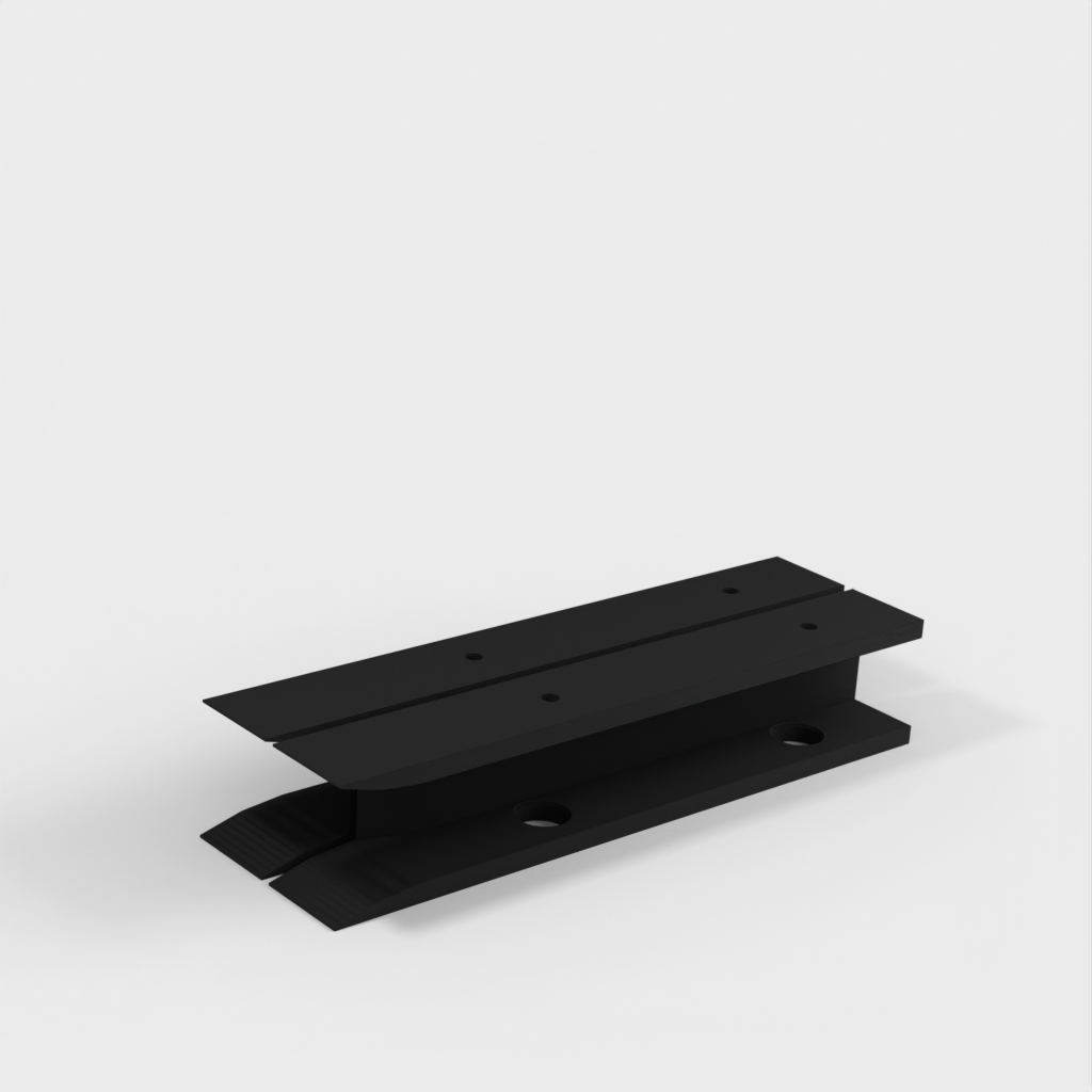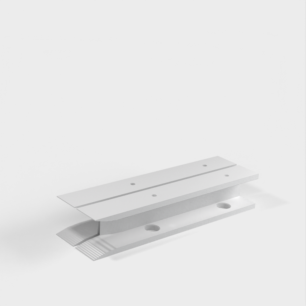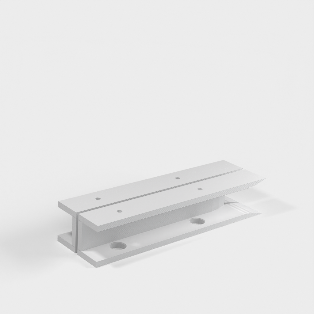 De ophanging bestaat uit twee rails die onder je bureau worden gemonteerd met 2x M3 schroeven. De ophanging zelf is uitgevoerd als twee parallelle torens om de stabiliteit te verhogen.